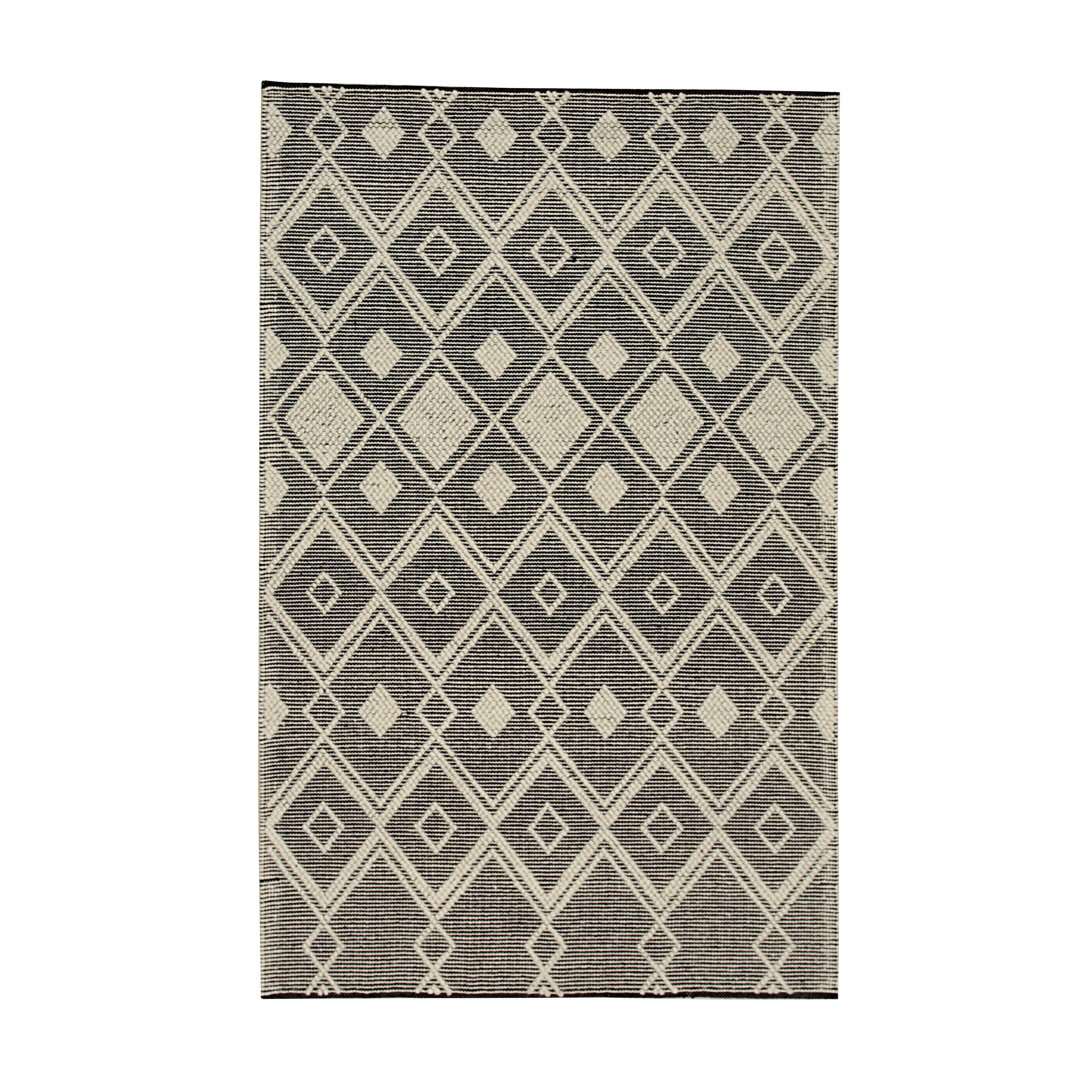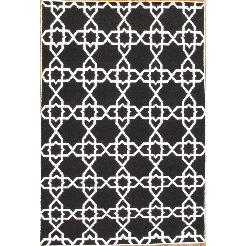Canvello Kilim Hand-Woven Lamb's Wool Area Rug- 5'6" X 8'6" - Black - Ivory - 5' 6" X 8' 6"