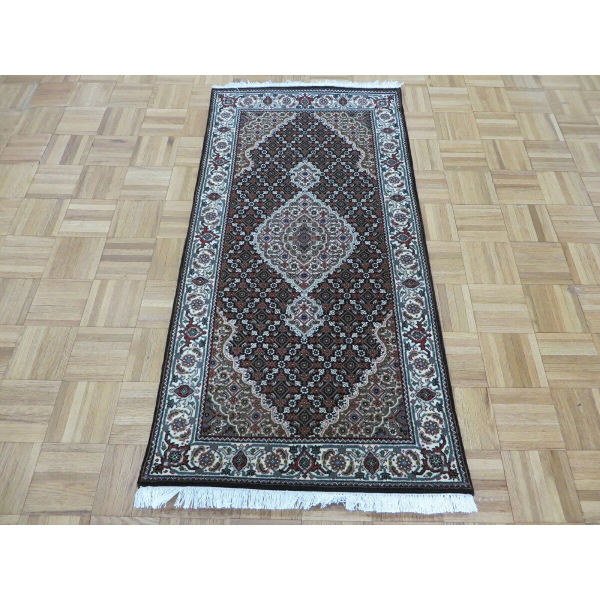 Mahi Tabriz Oriental Black Wool/Silk Hand-knotted Area Rug - 2'6 x 4'9