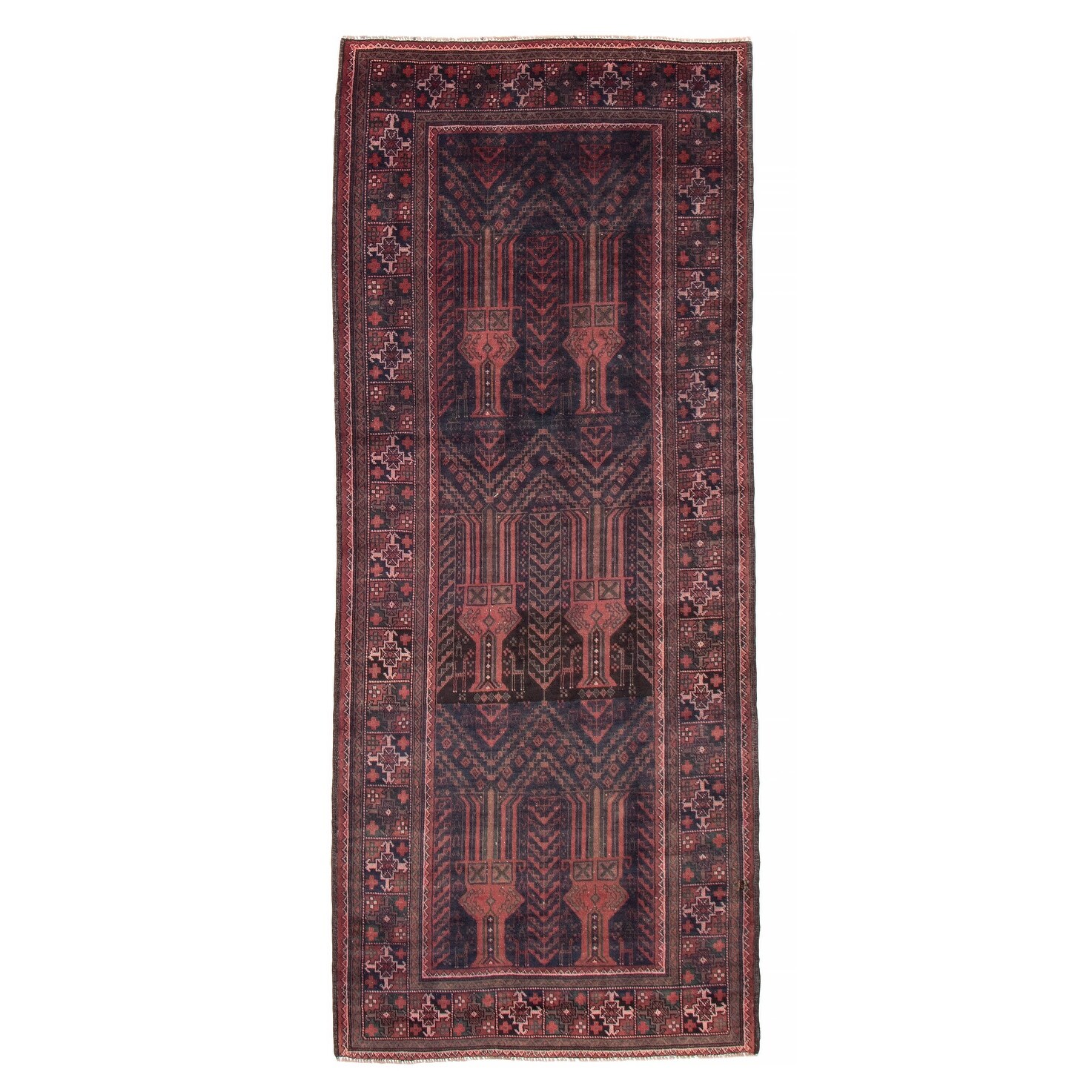 ECARPETGALLERY Hand-knotted Baluch Black, Red Wool Rug - 4'0 x 9'10