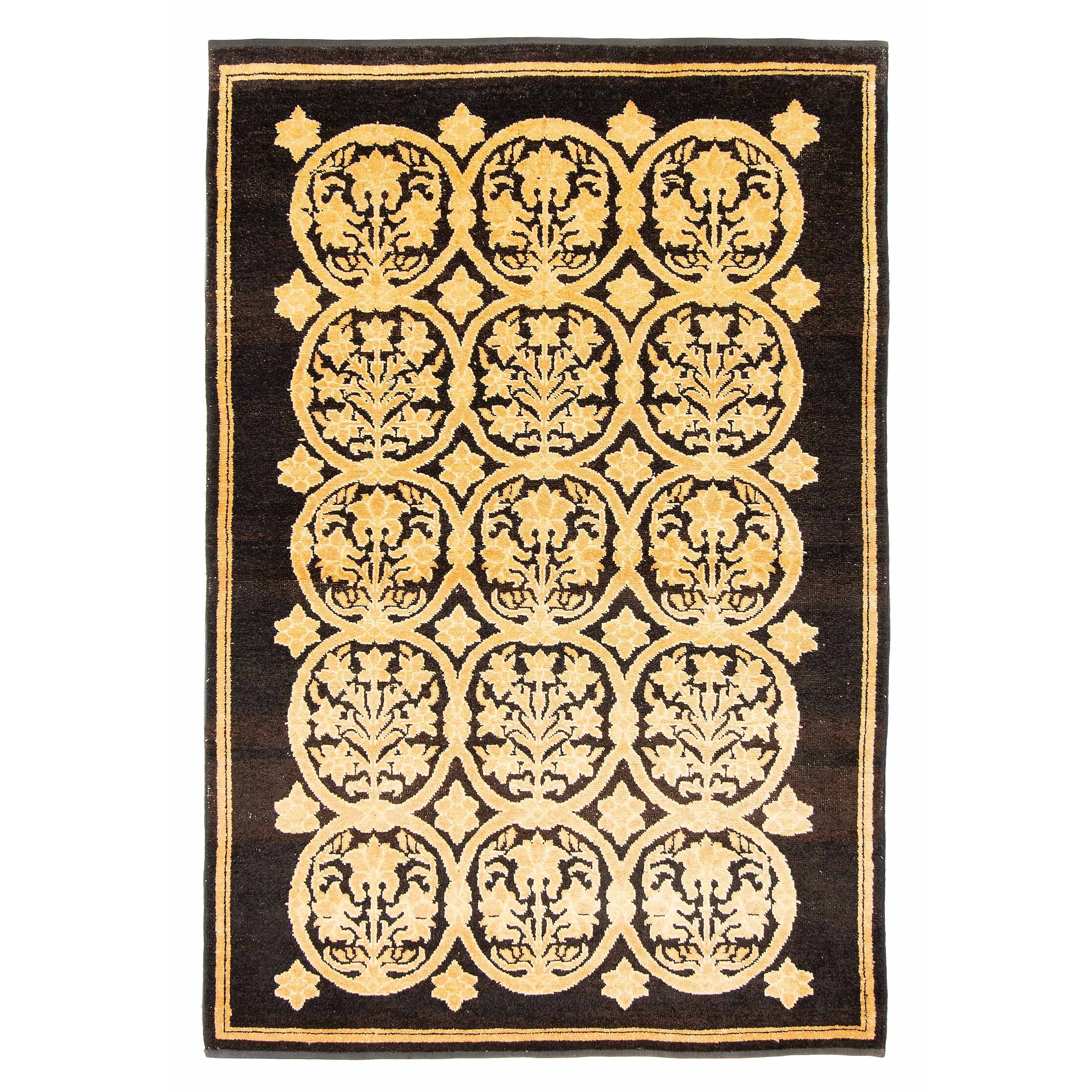 ECARPETGALLERY Hand-knotted Finest Ziegler Black Wool Rug - 4'0 x 6'0