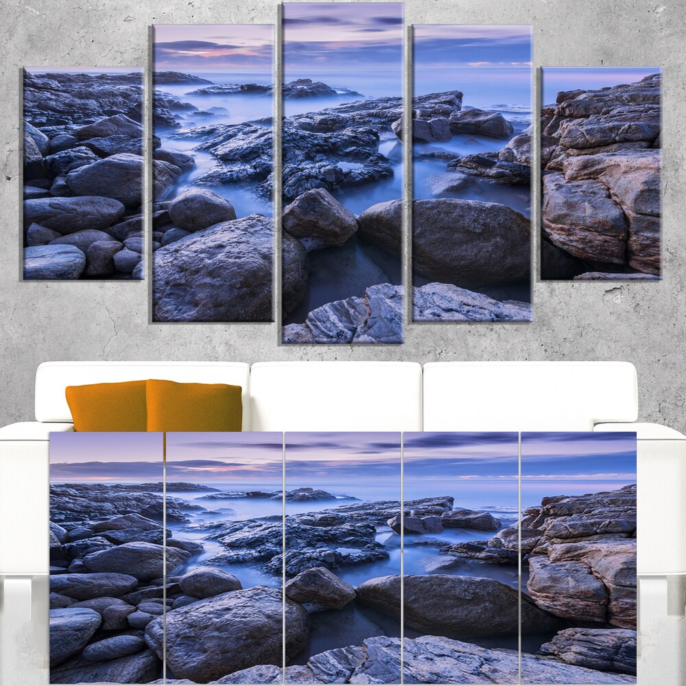Rocky Blue Seashore in Morning - Modern Seascape Canvas Artwork Print