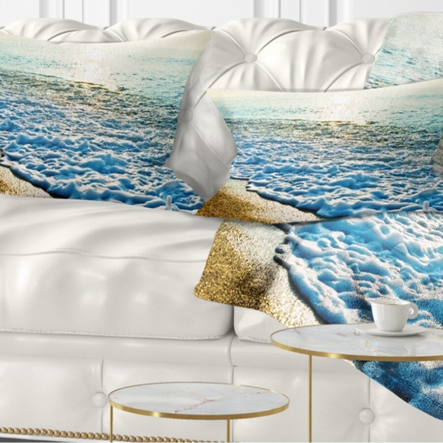Designart 'Bright Blue Tranquil Seashore' Beach Photo Throw Pillow