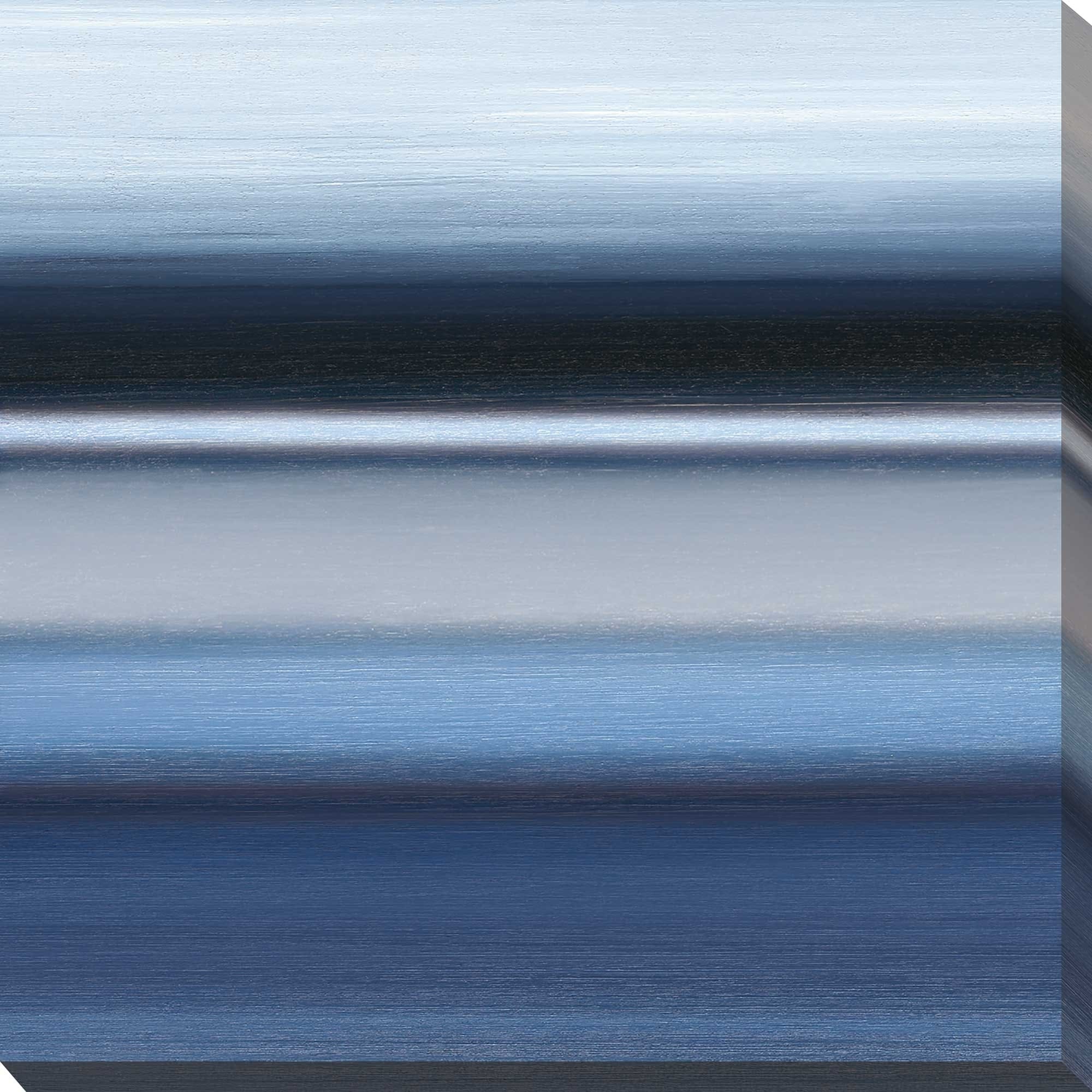 Designart "Blue And Brush Black Stripes" Modern Canvas Wall Art Print