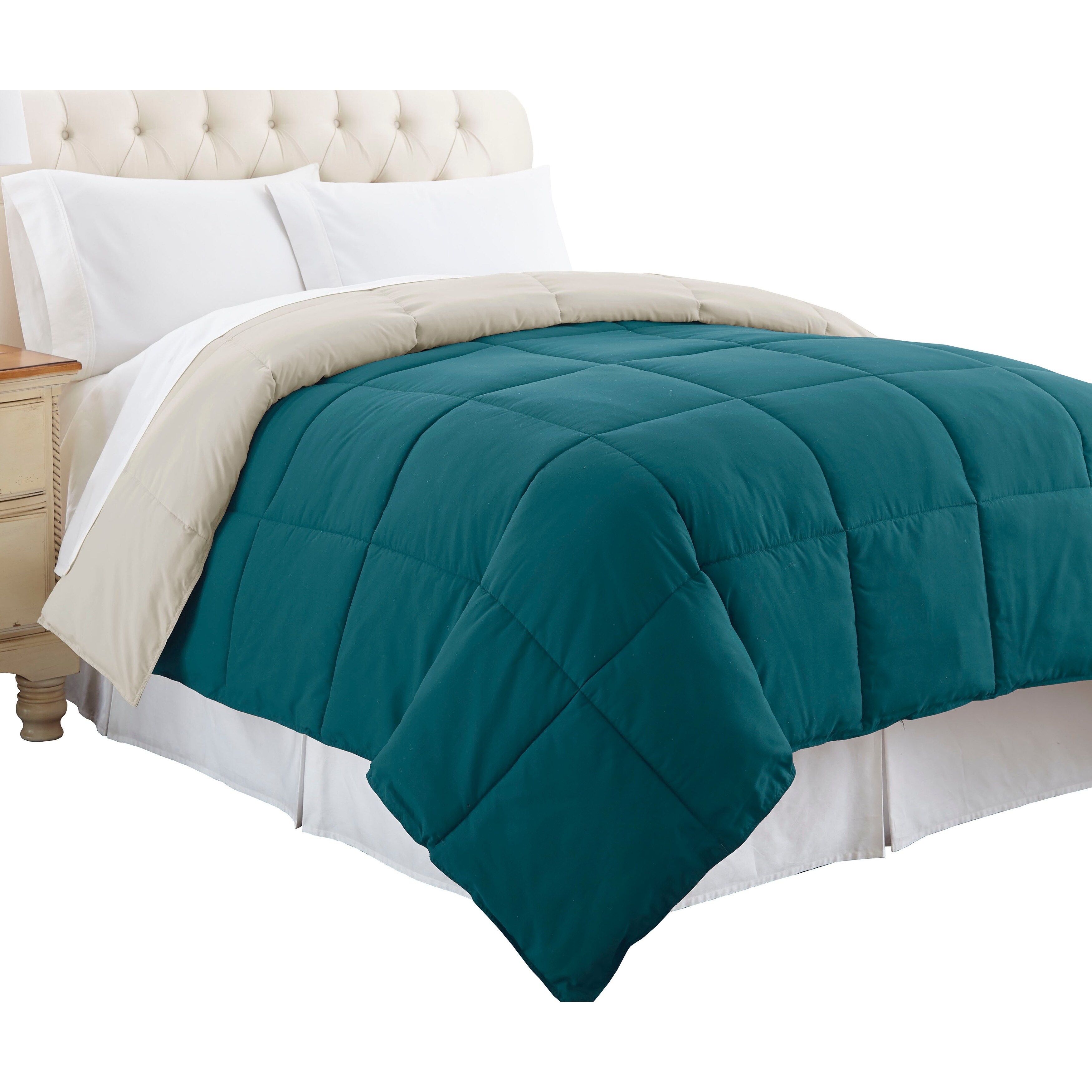 Genoa Queen Size Box Quilted Reversible Comforter the Urban Port, Blue and Gray