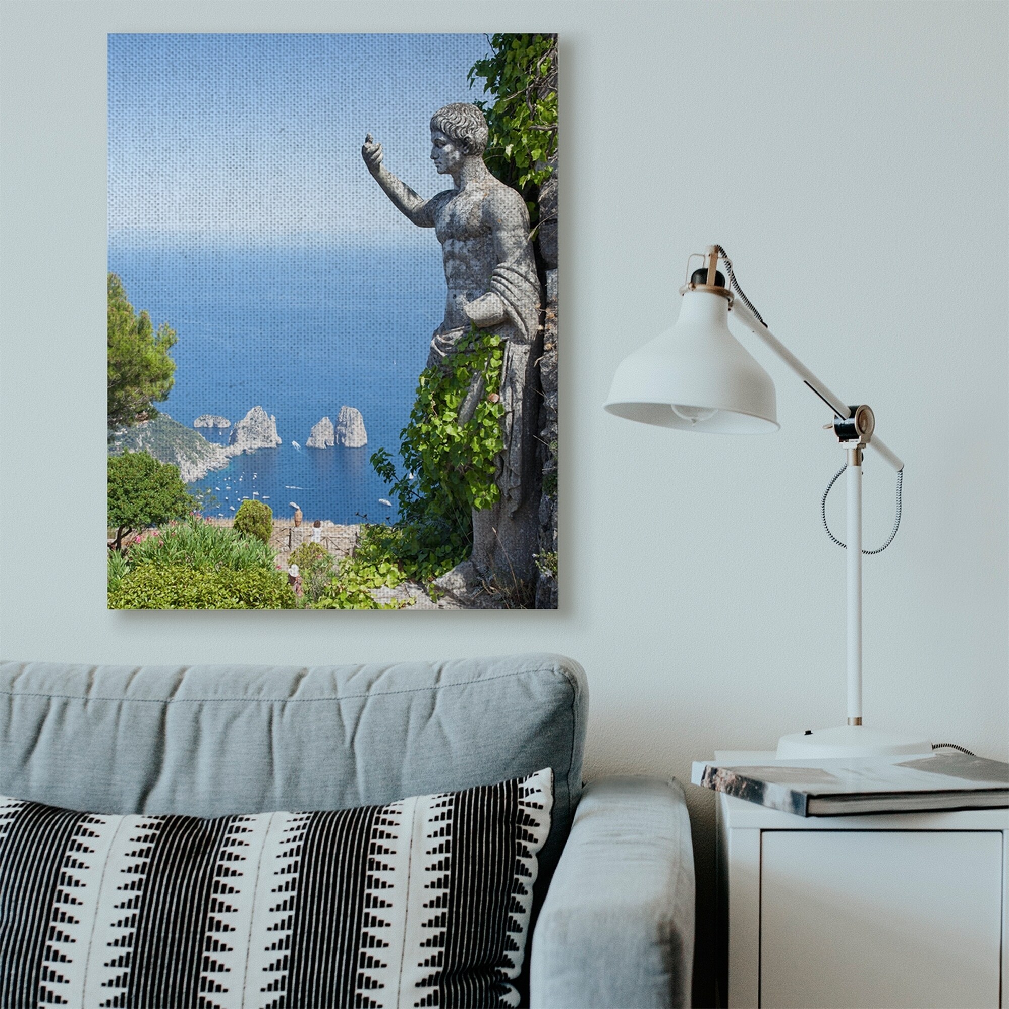 Stupell Greek Statue Overlooking Ocean Landscape Blue Green Photograph Canvas Wall Art