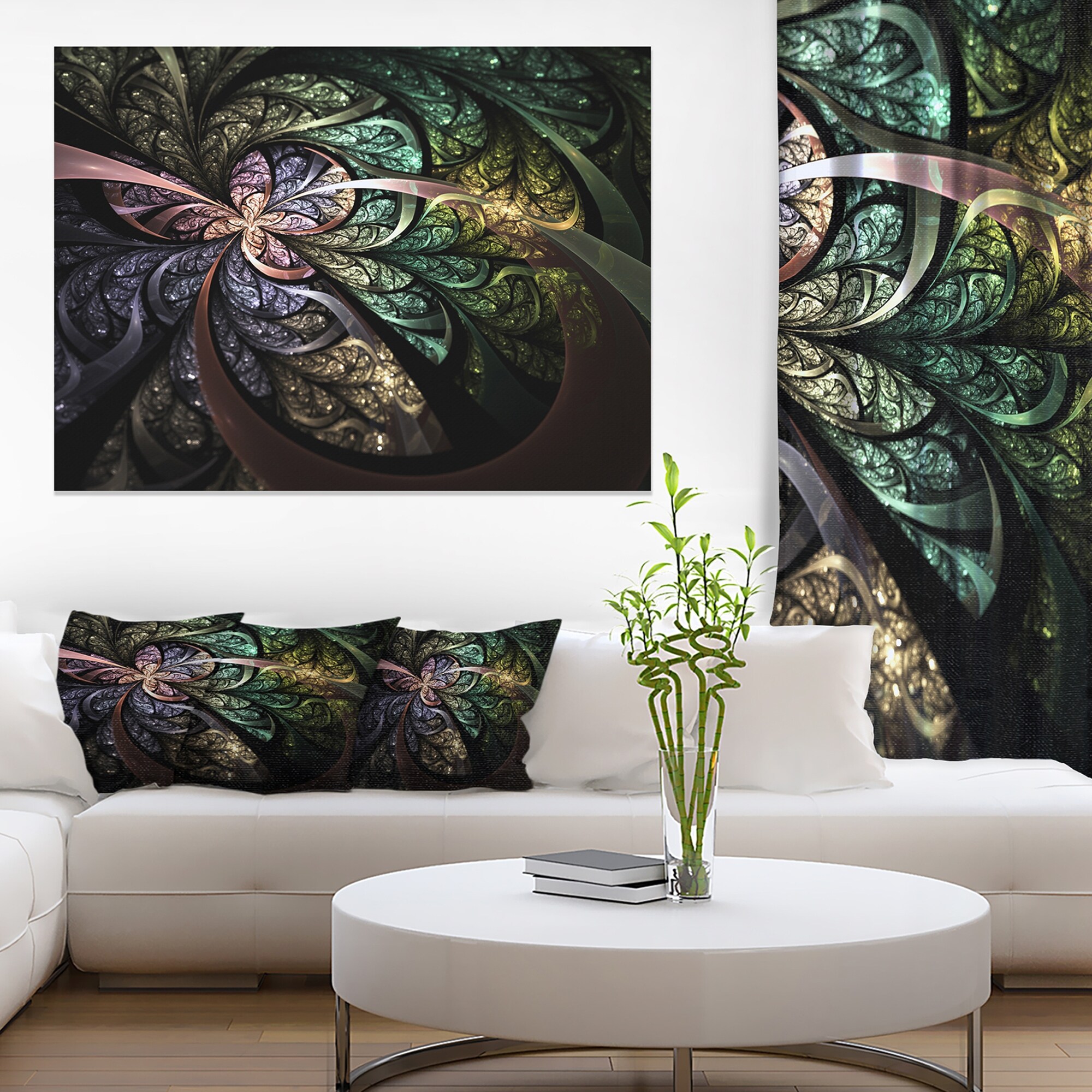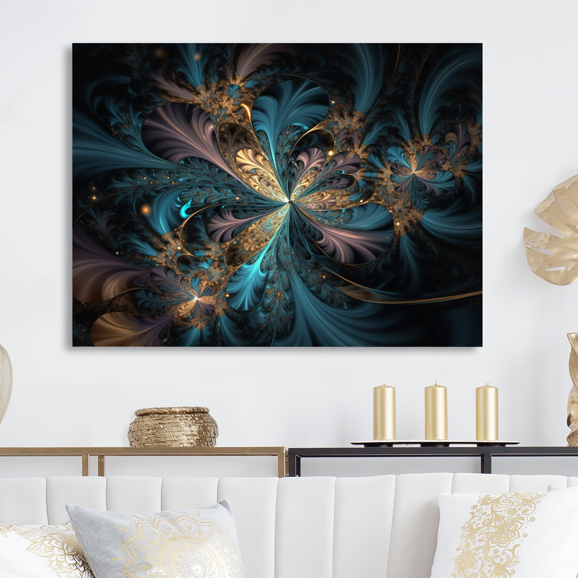 Designart "Brown Blue Fractal Flower Digital Art" Floral Canvas Art Print