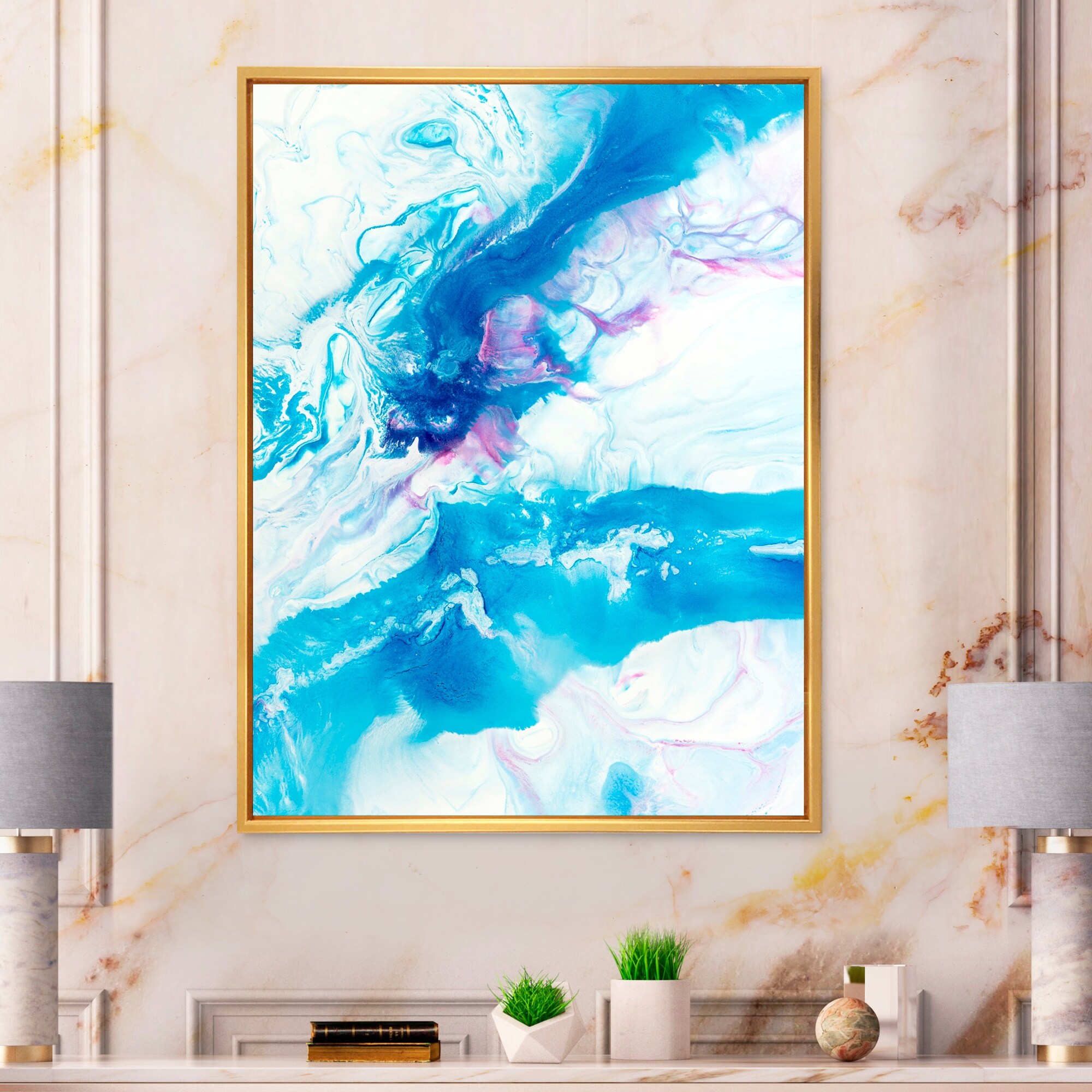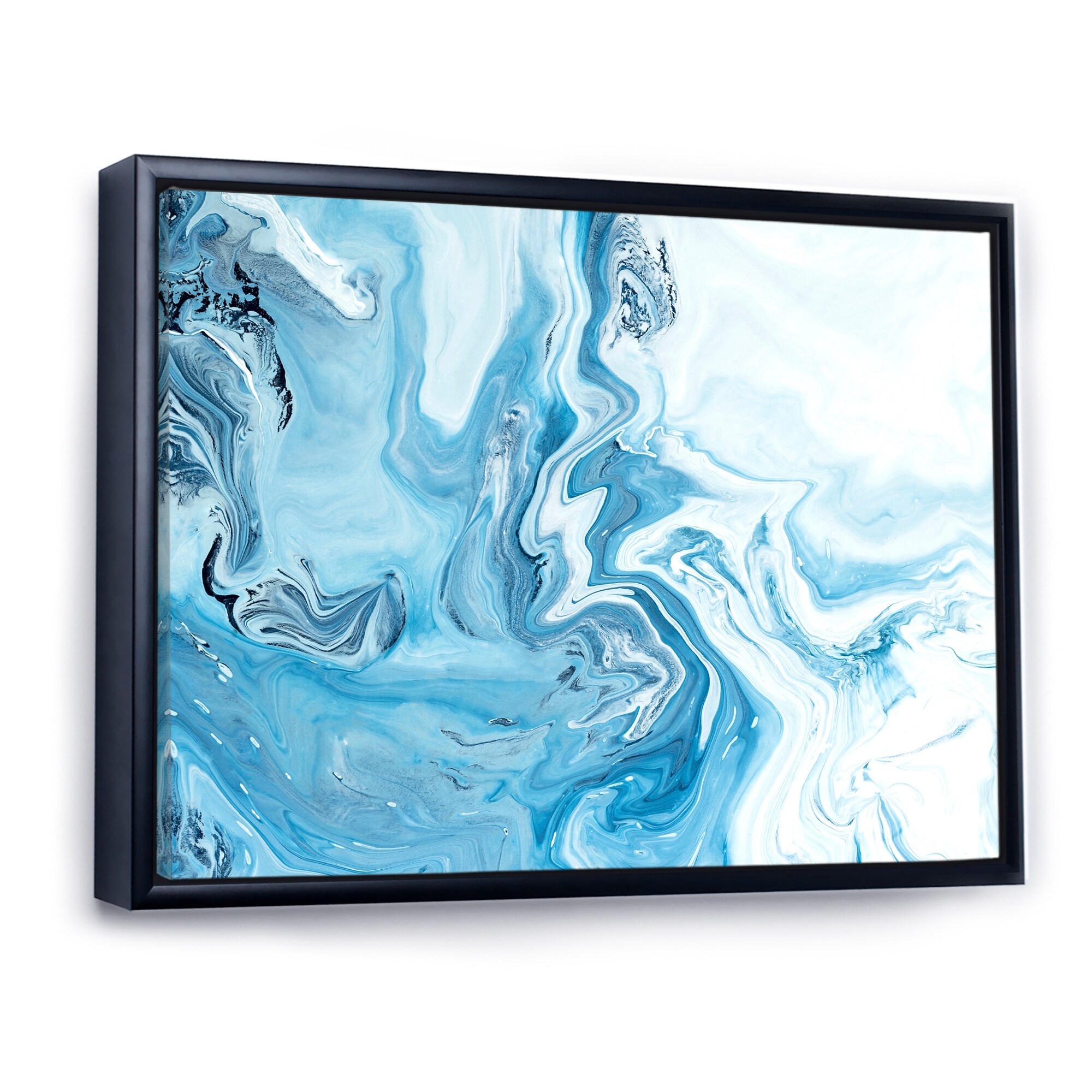 Designart "White And Blue Marble Waves" Modern Framed Canvas Wall Art Print