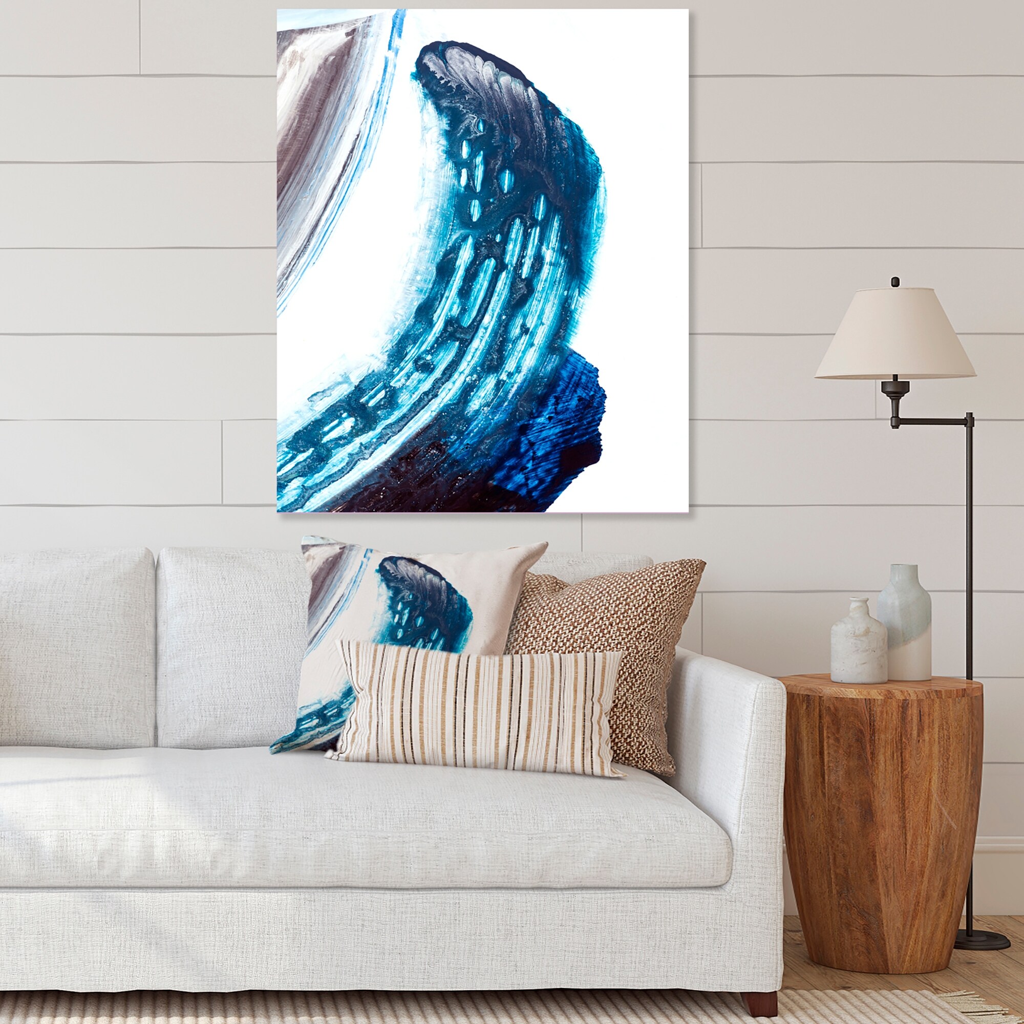 Designart "Blue Wave Liquid Art on White II" Modern Framed Canvas Wall Art Print