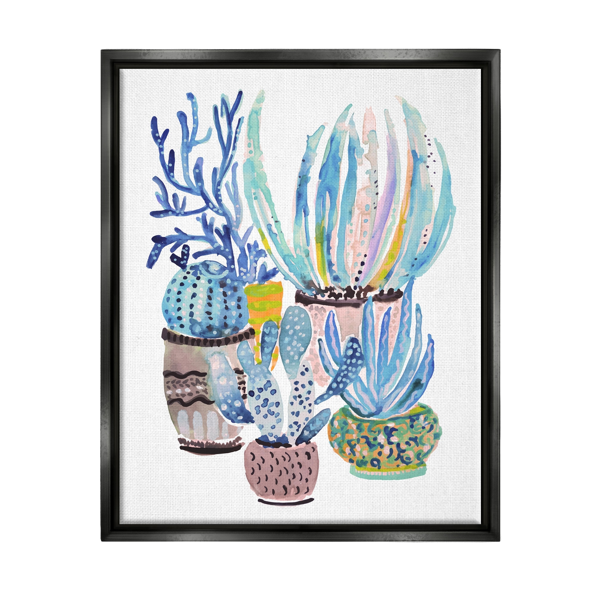 Stupell Industries Patterned Blue Cactus Plants Framed Floater Canvas Wall Art by Karen Fields