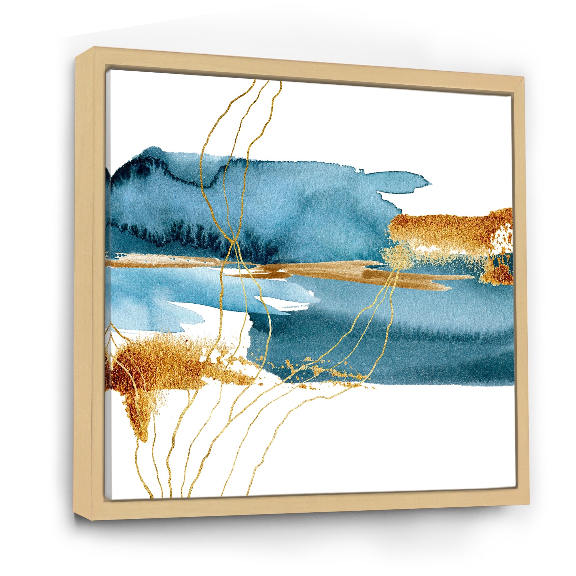 Designart "Blue Underwater Plant With Golden Laminaria Branch" Modern Framed Canvas Wall Art Print