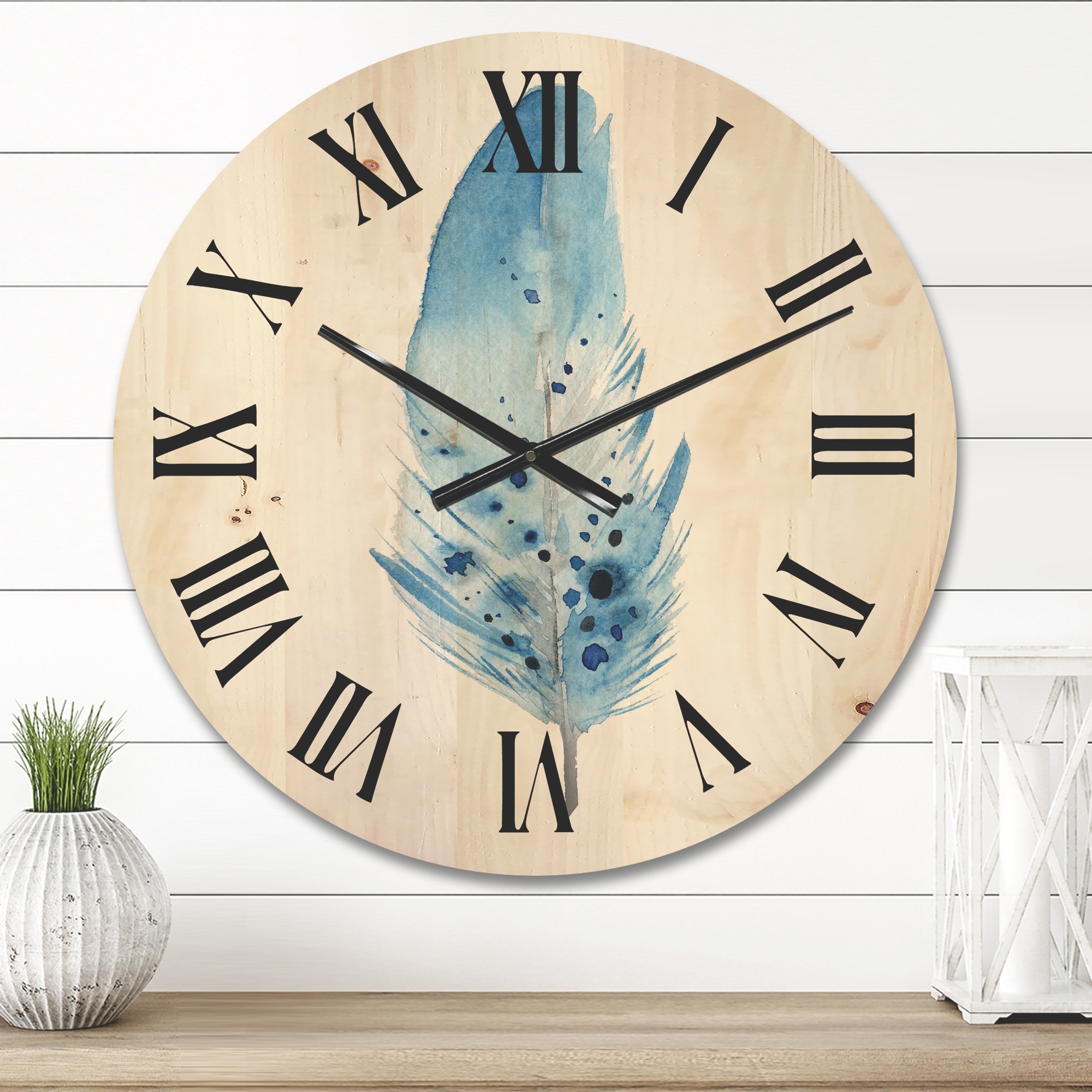 Designart 'Blue Boho Feathers' Bohemian & Eclectic Wood Wall Clock