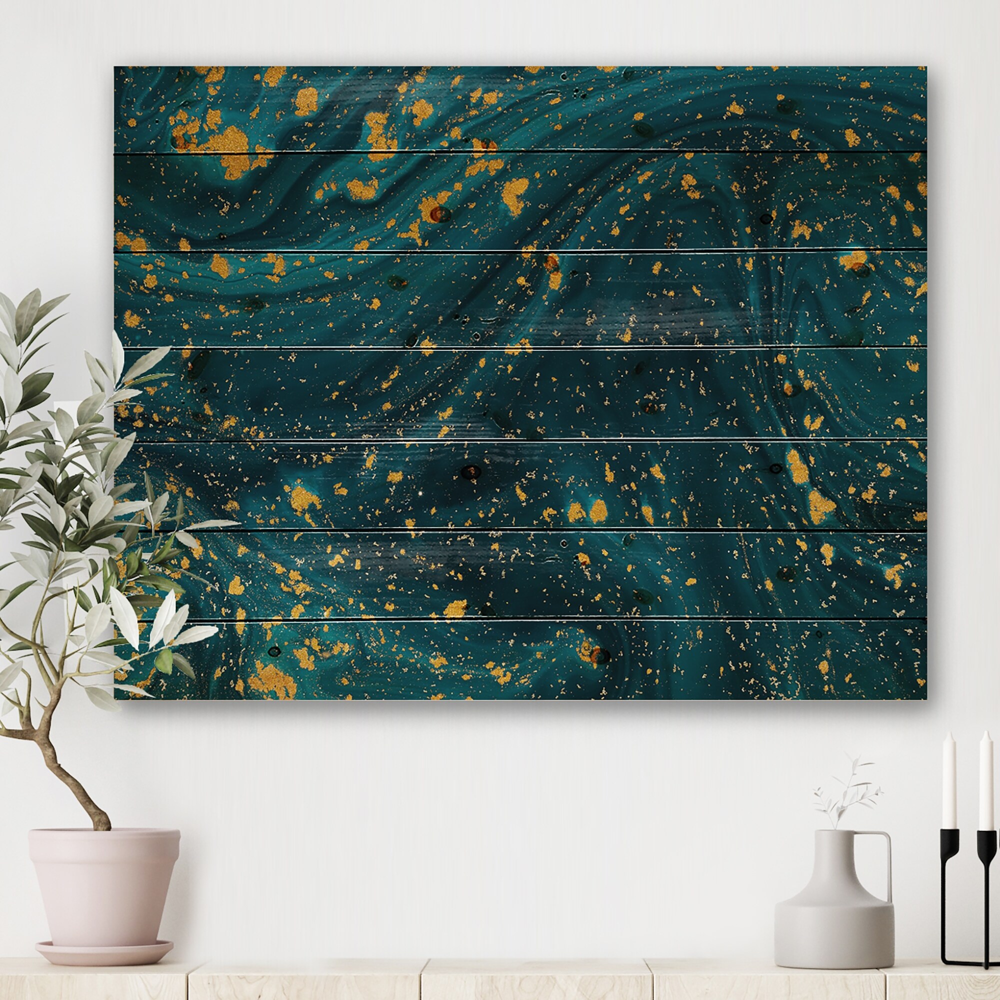 Designart 'Dark Blue Marble With Golden Glitter' Modern Print on Natural Pine Wood