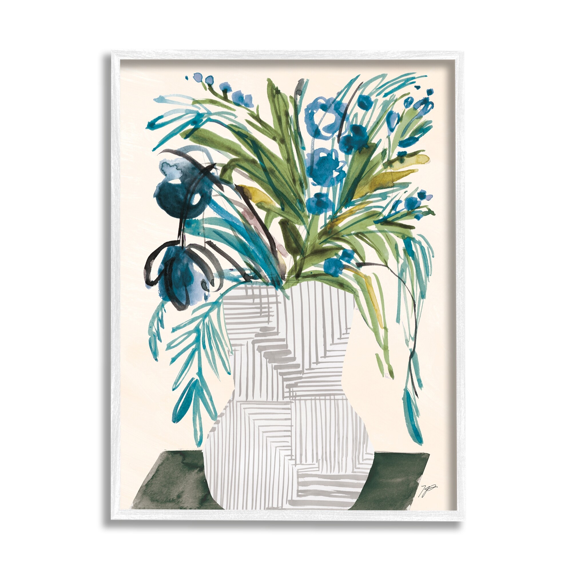 Stupell Modern Cascading Blue Flowers Abstract Floral Arrangement Framed Wall Art
