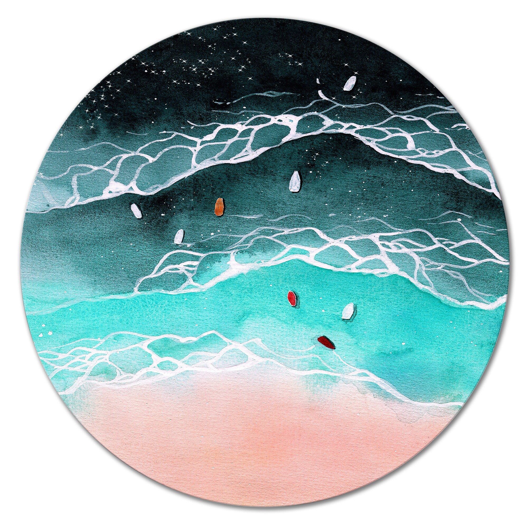 Stupell Industries Minimal Male Diver Abstract Blue Nautical Waves Canvas Wall Art