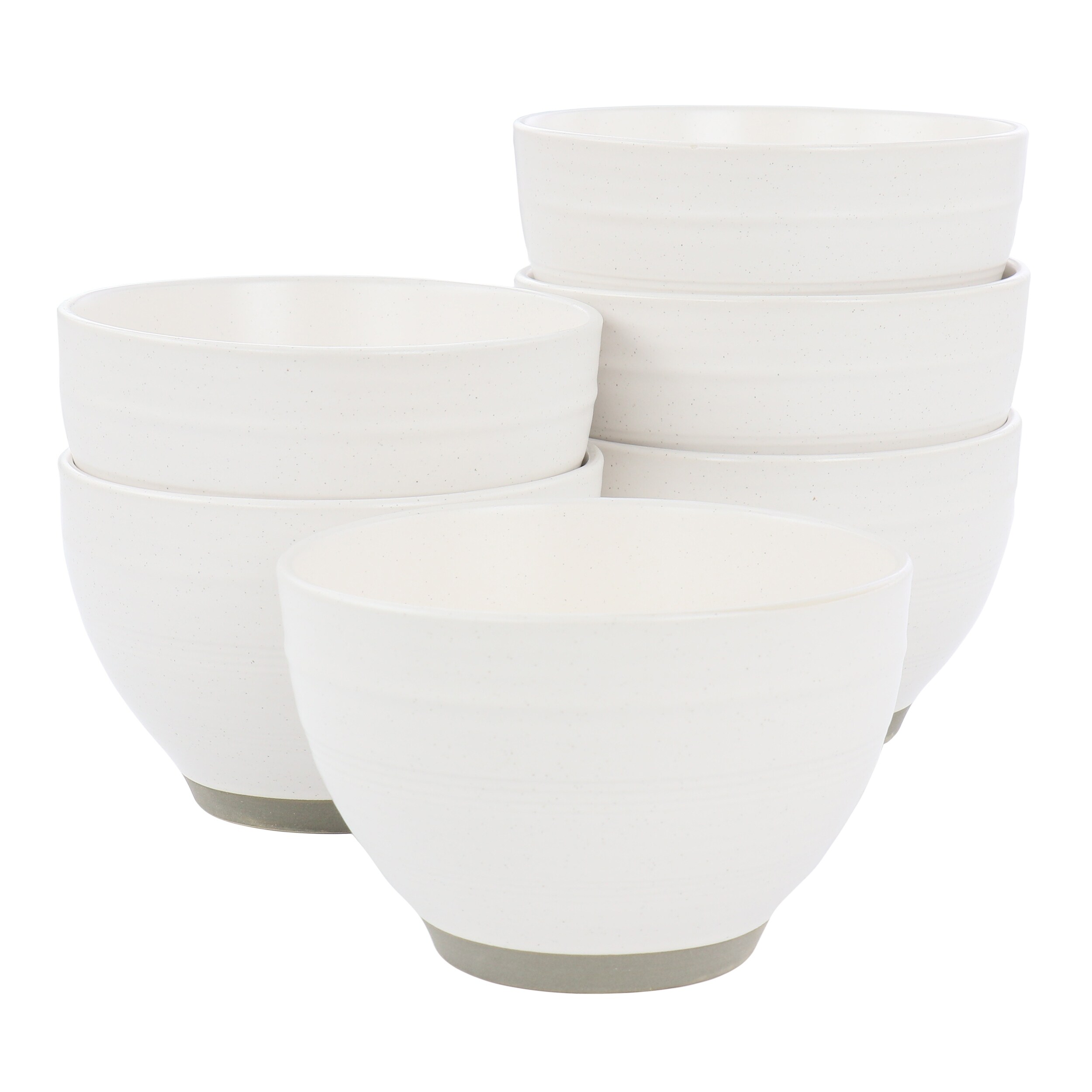6 Piece 5 Inch Round Stoneware Bowl Set in Speckled White