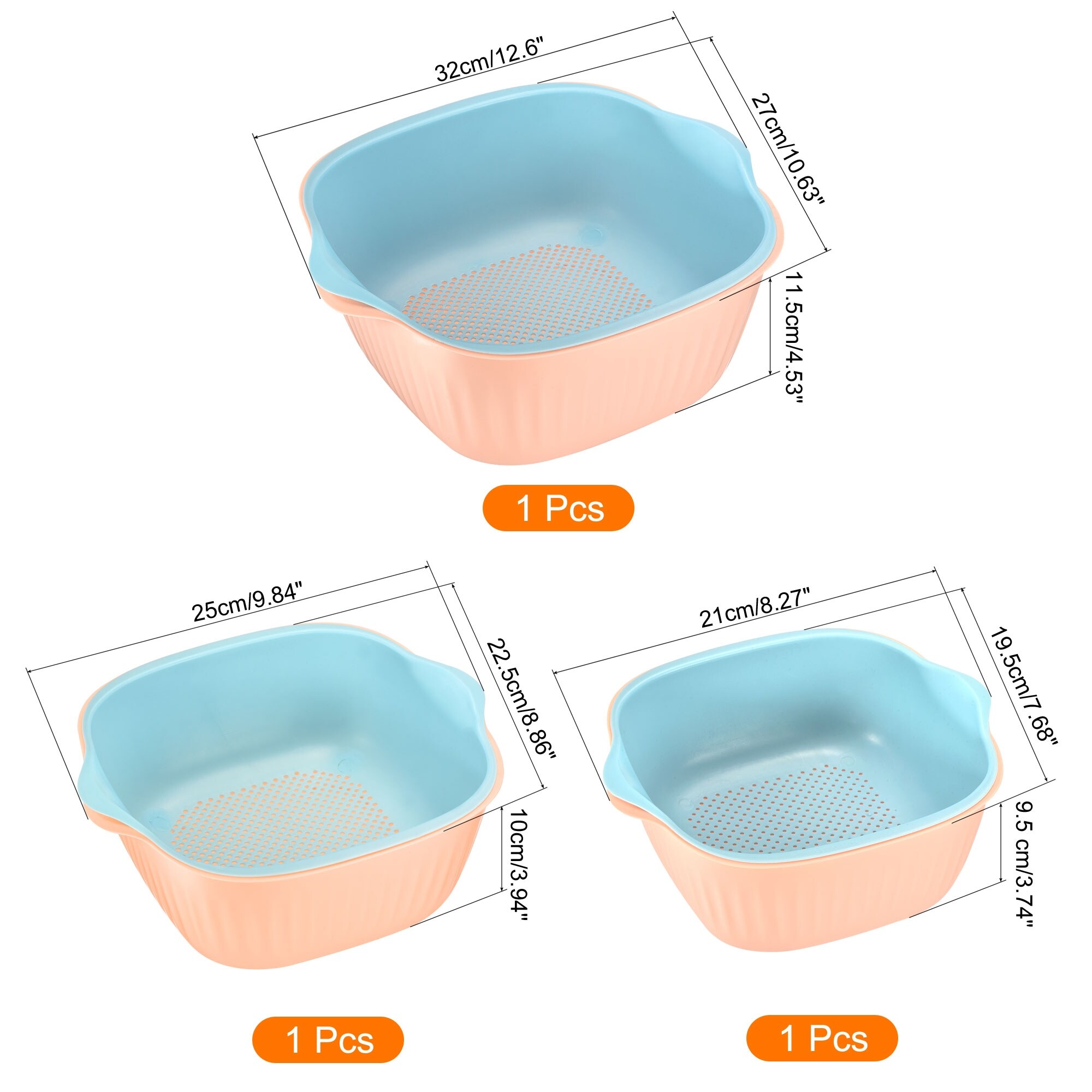 Kitchen Colander Bowl Set 3PCS, Washing Bowl & Strainer Double Layered - 32x27x11.5cm, 25x22.5x10cm, 21x19.5x9.5cm