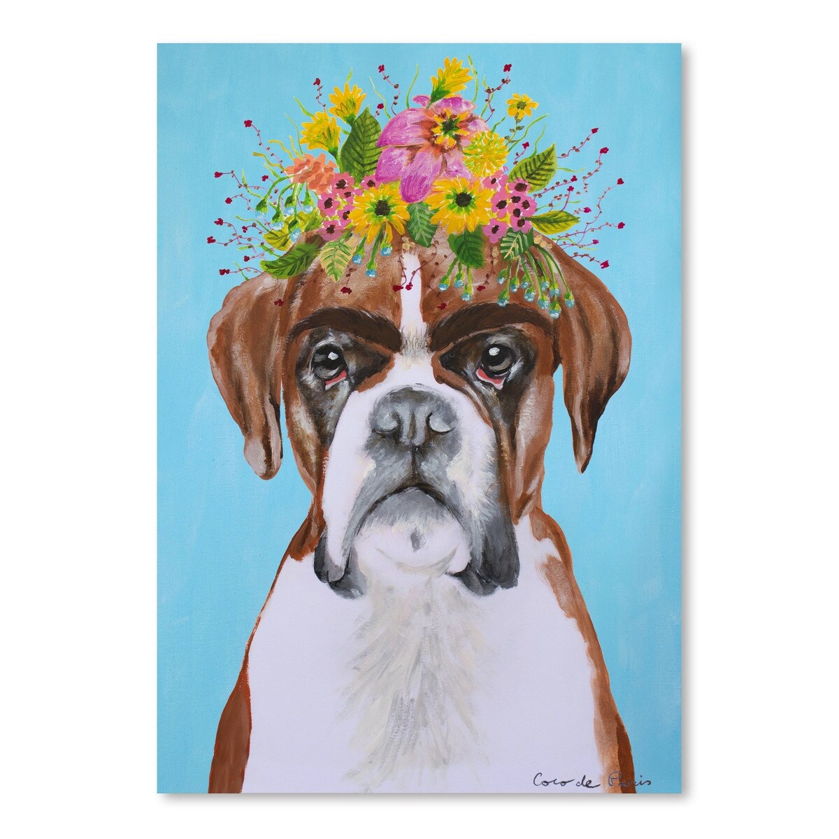 Designart 'Cute Boxers Floral Art' Animals Canvas Wall Art
