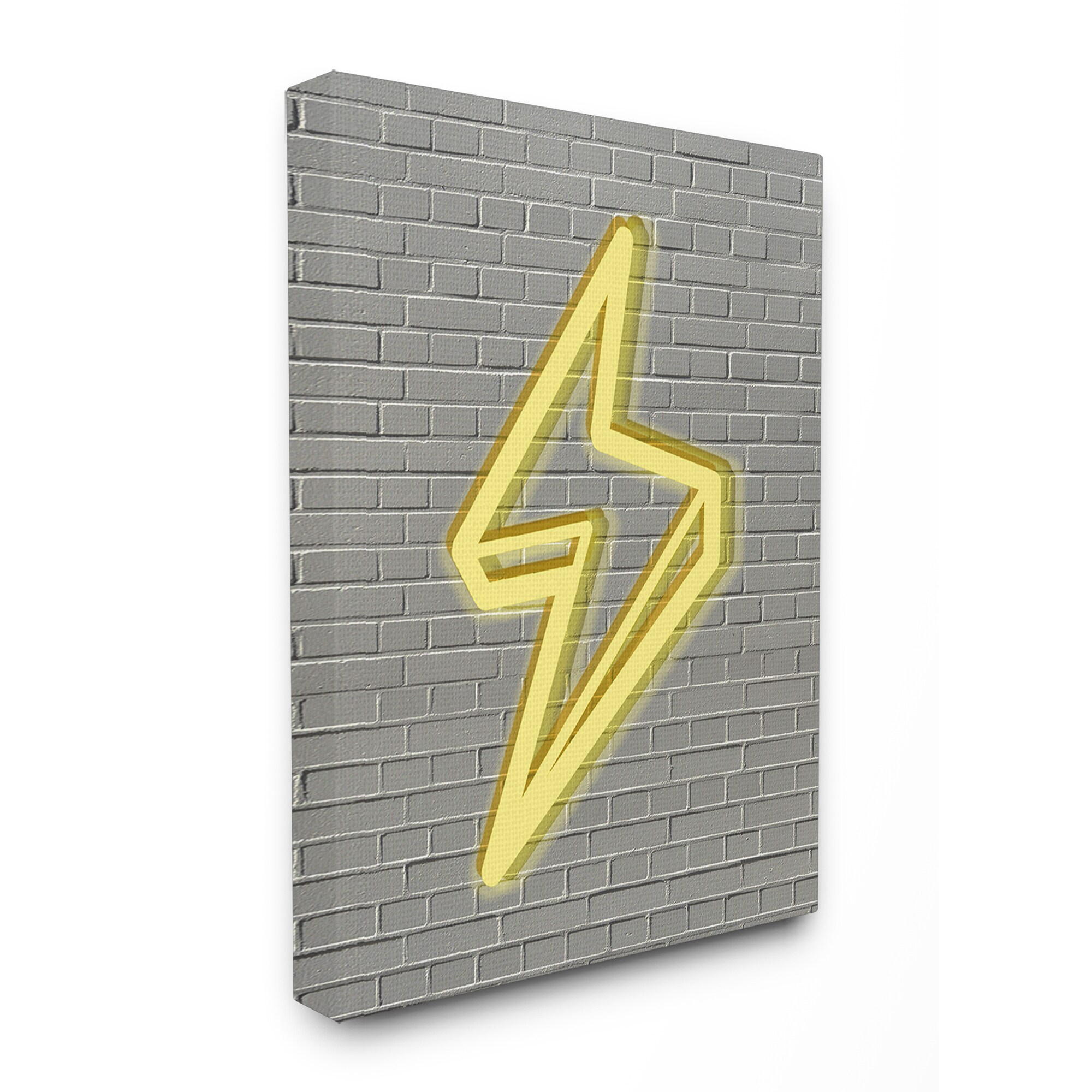 'Neon Lightning with Brick Background' Stretched Canvas Wall Art