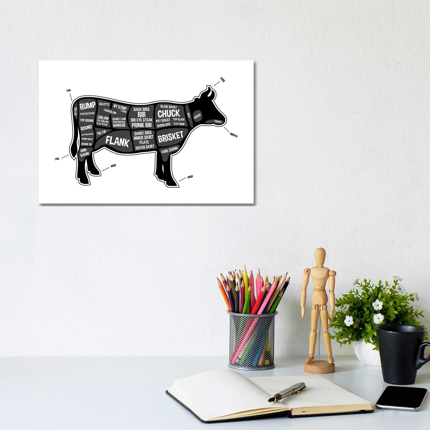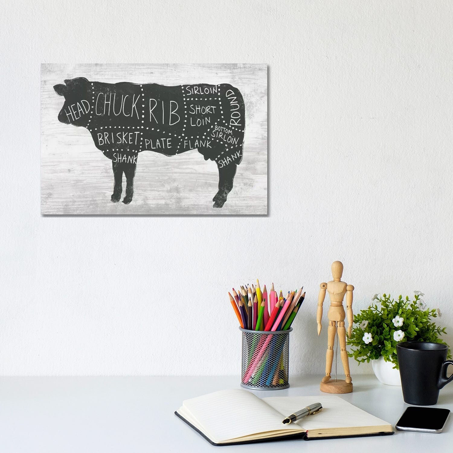 iCanvas "Cow Butcher Print" by Benton Park Prints Canvas Print