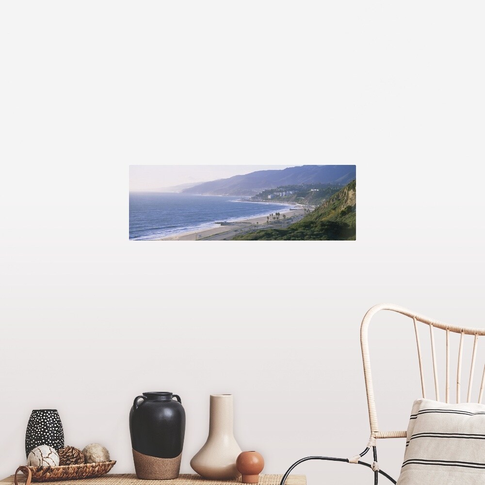 "High angle view of the beach, Malibu, Pacific Palisades, Santa Monica Bay, Ca" Poster Print