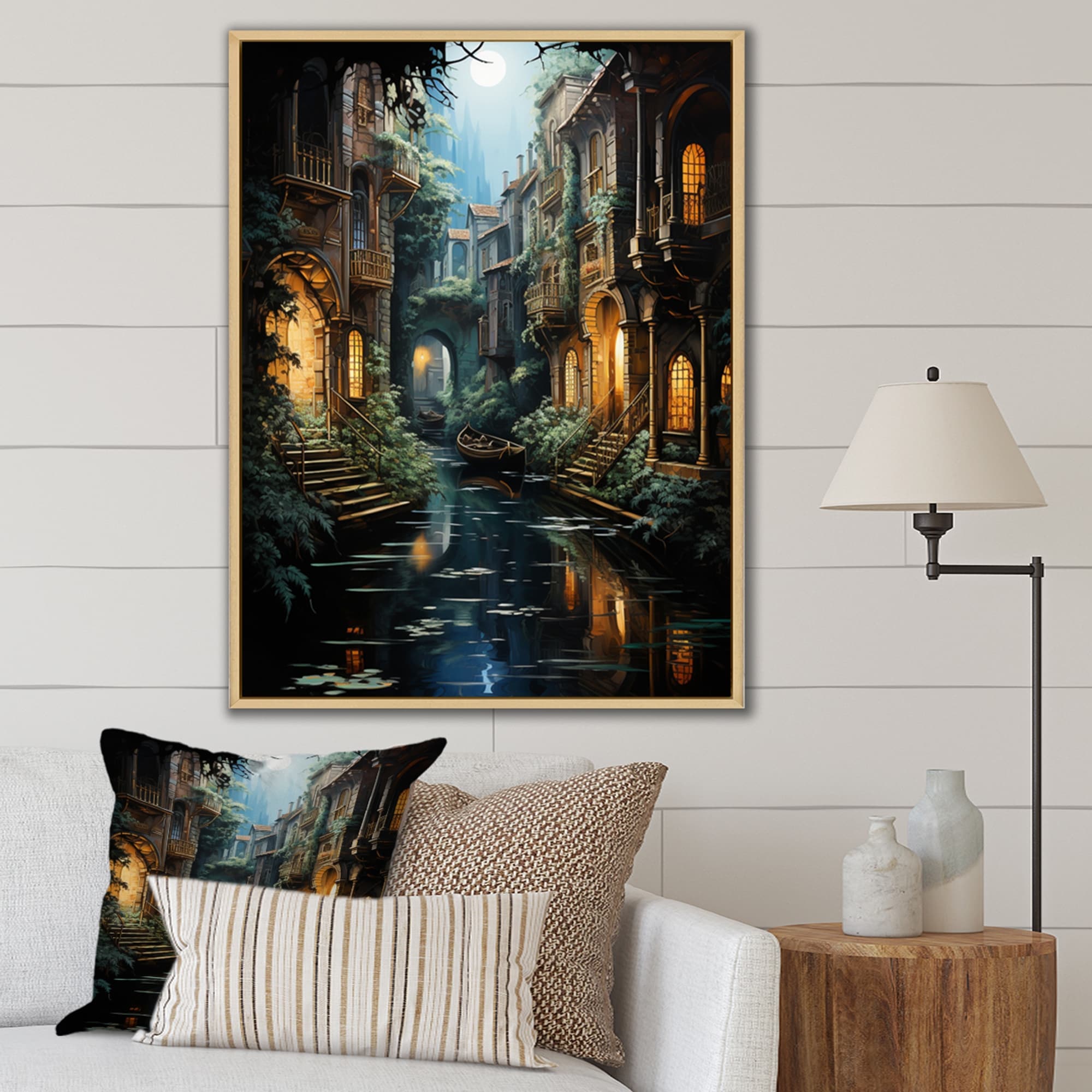Designart "Beige Canal Surreal Waterways Magical I" Canals Framed Canvas Wall Art