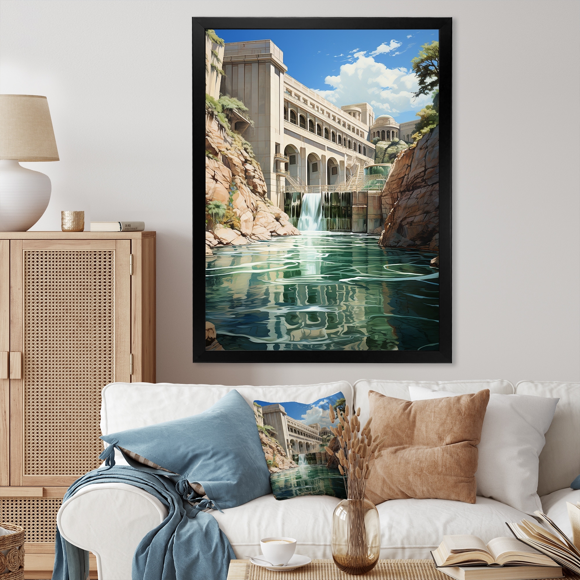 Designart "Mansfield Dam Landscape II" Dams Framed Canvas Wall Art