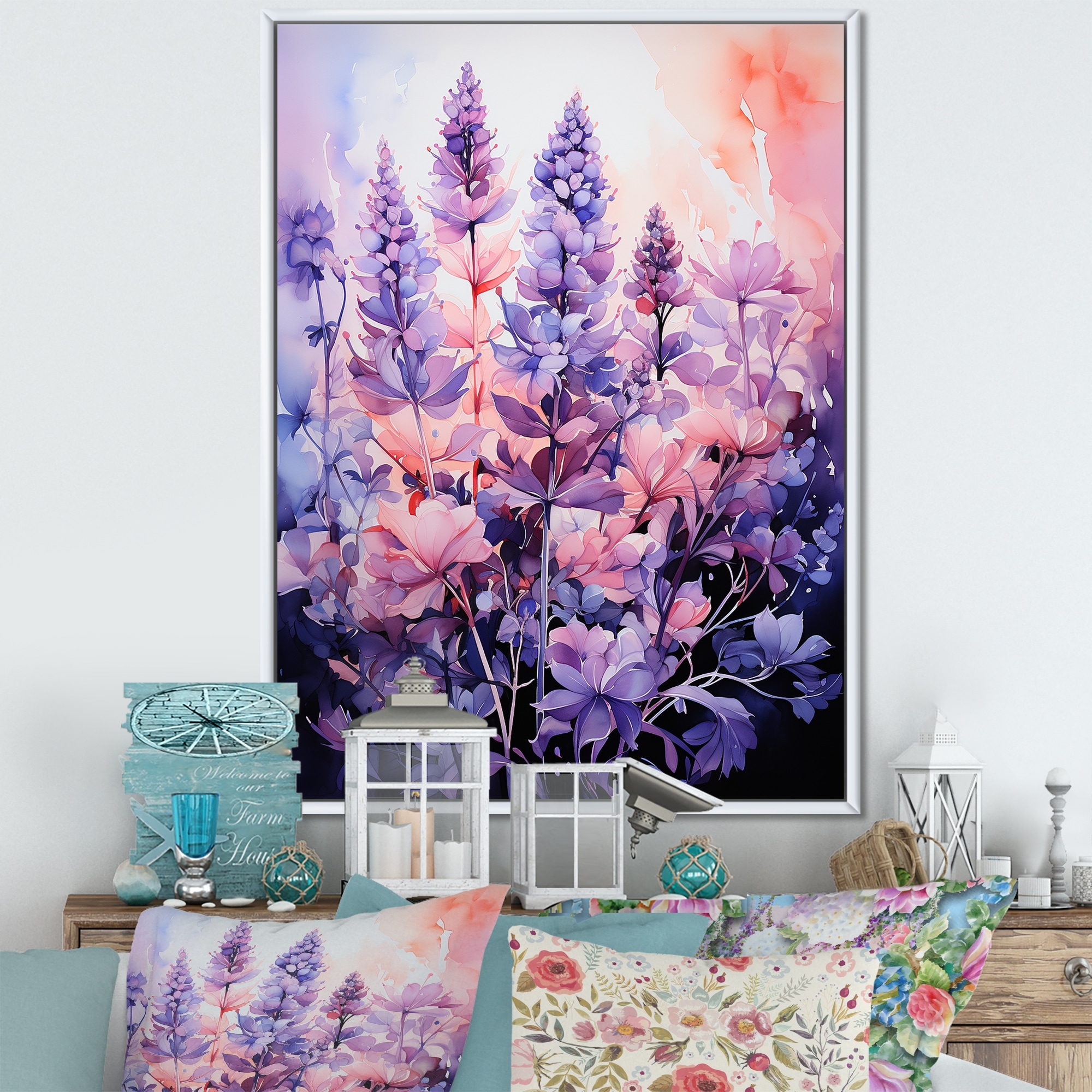 Designart "Meadow Lavender Enchantment I" Meadow Framed Canvas Wall Art