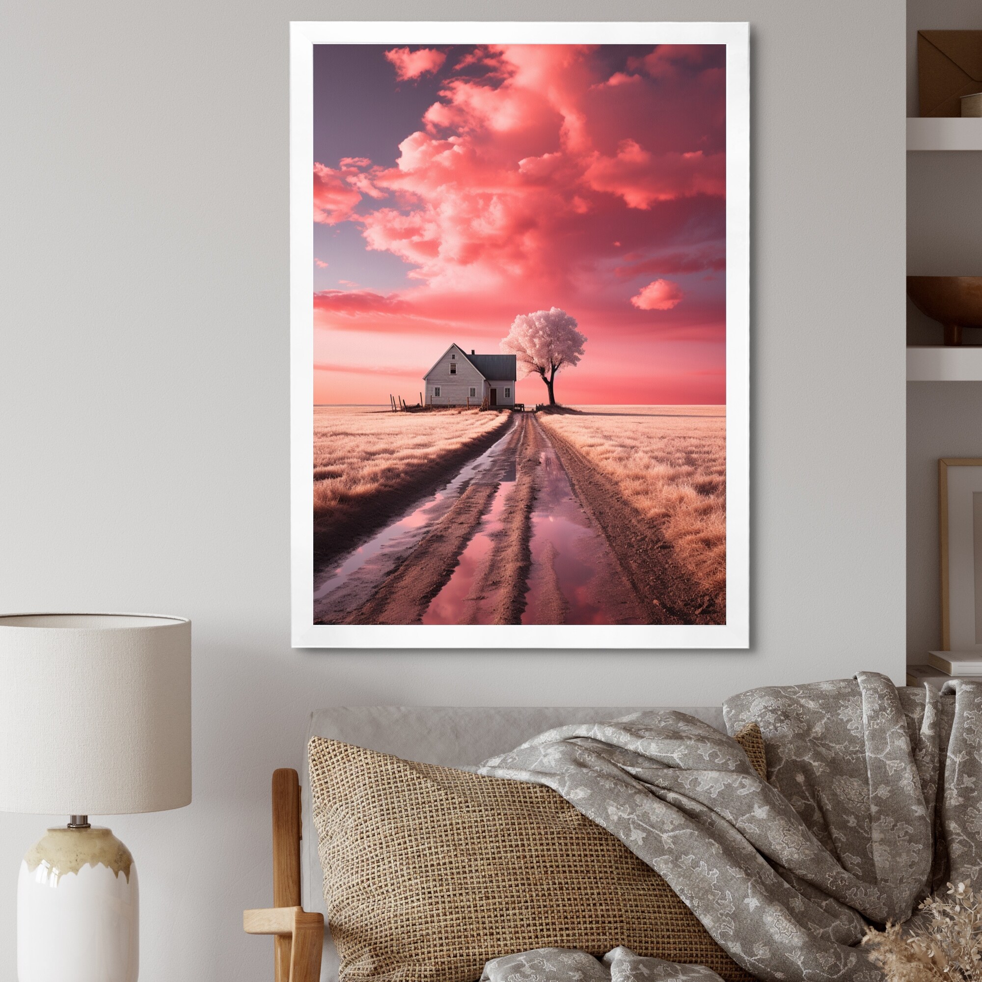 Designart "Monochrome Pink Farmhouse Solitude" Farm Framed Canvas Prints