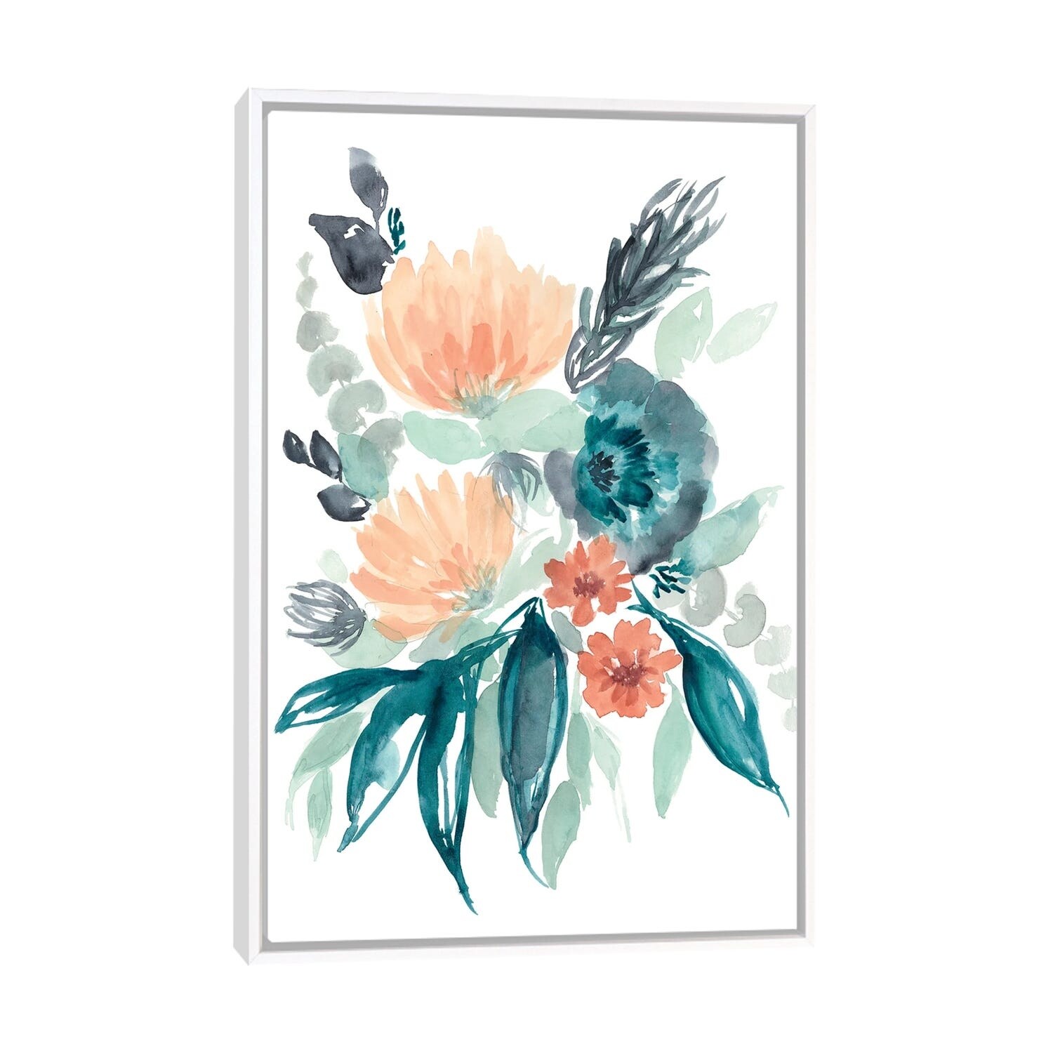 iCanvas "Teal & Peach Bouquet I" by Jennifer Goldberger Framed Canvas Print