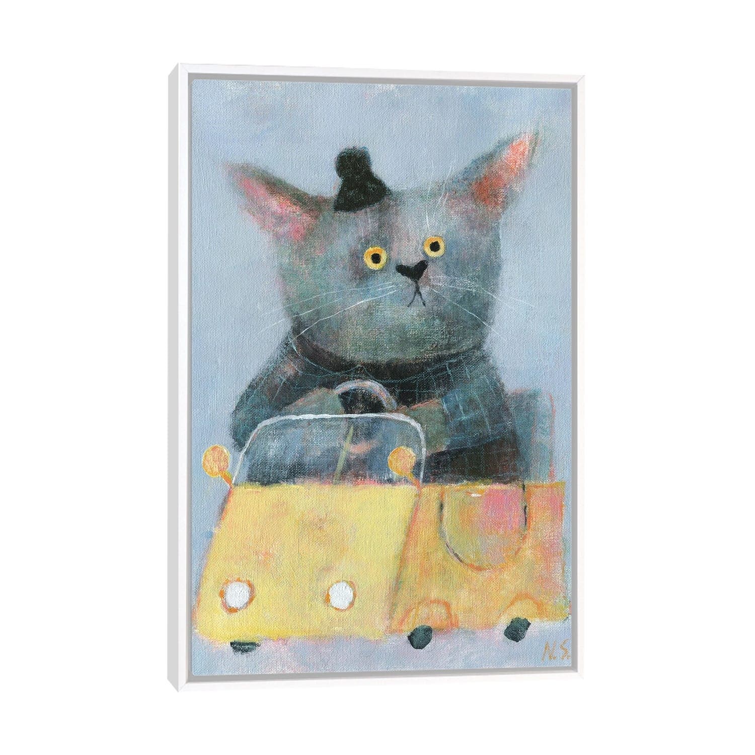 iCanvas "The Cat in the Yellow Car" by Natalia Shaloshvili Canvas Print