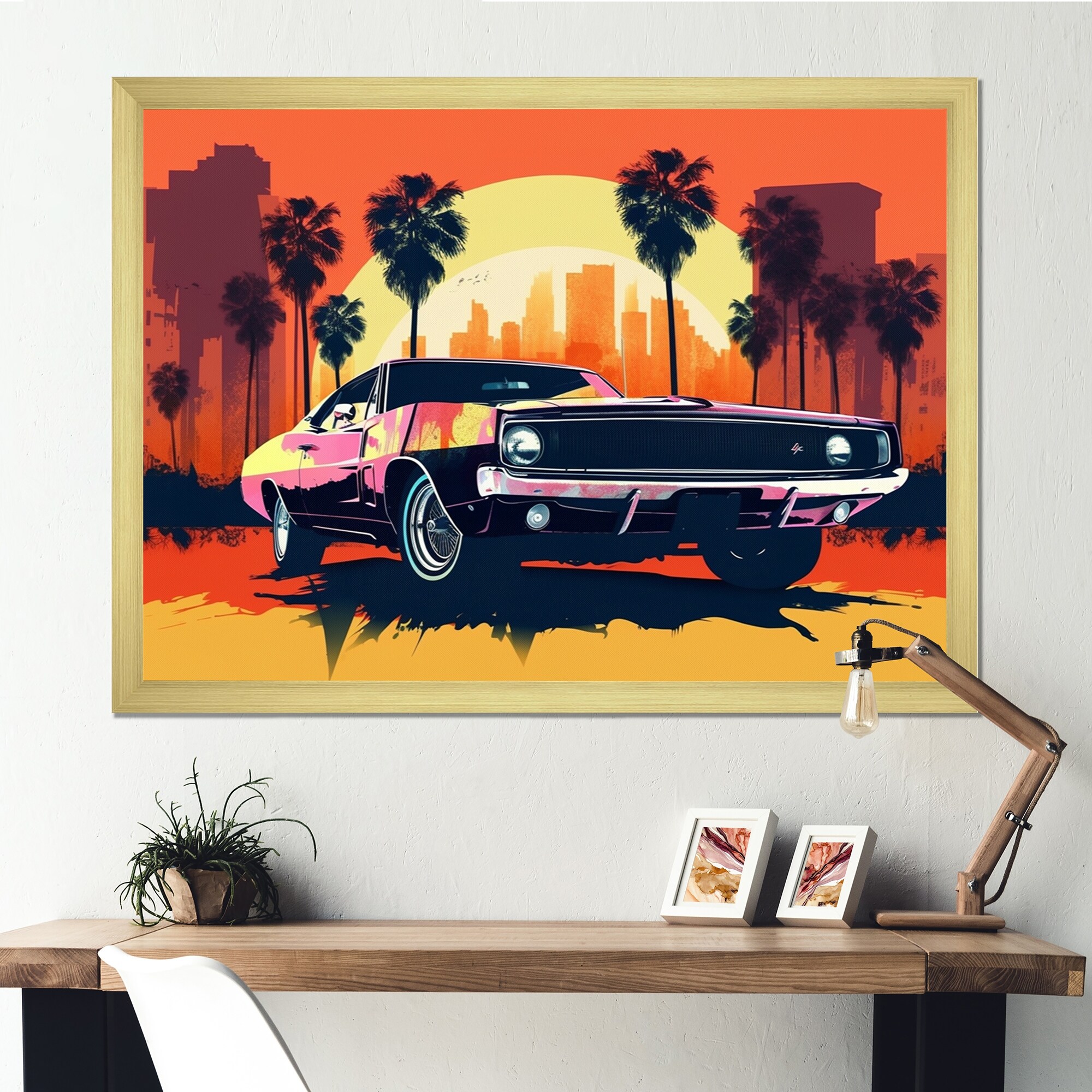 Designart "80S Groovy Cars Iii" Retro Car Framed Canvas Print