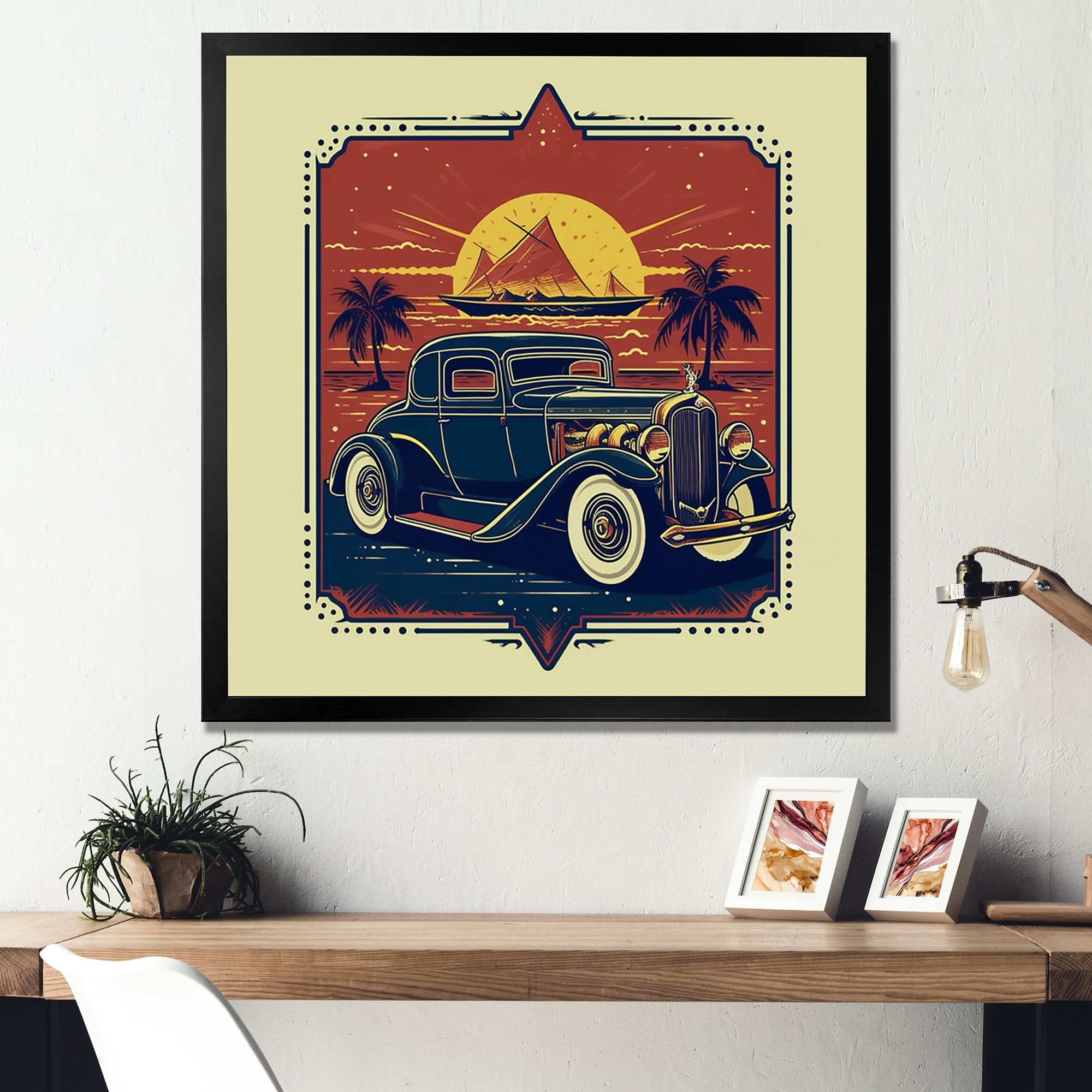 Designart "80S Groovy Cars I" Retro Car Framed Wall Art Prints