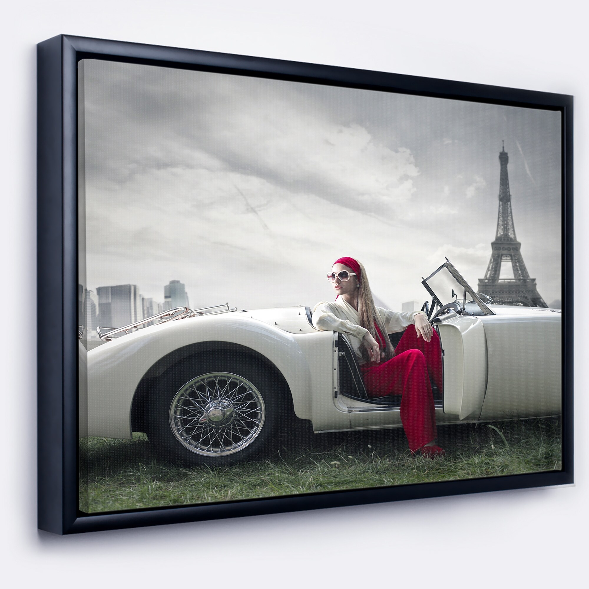 Designart "Fashion Woman in Car" Cars Framed Canvas Art Print
