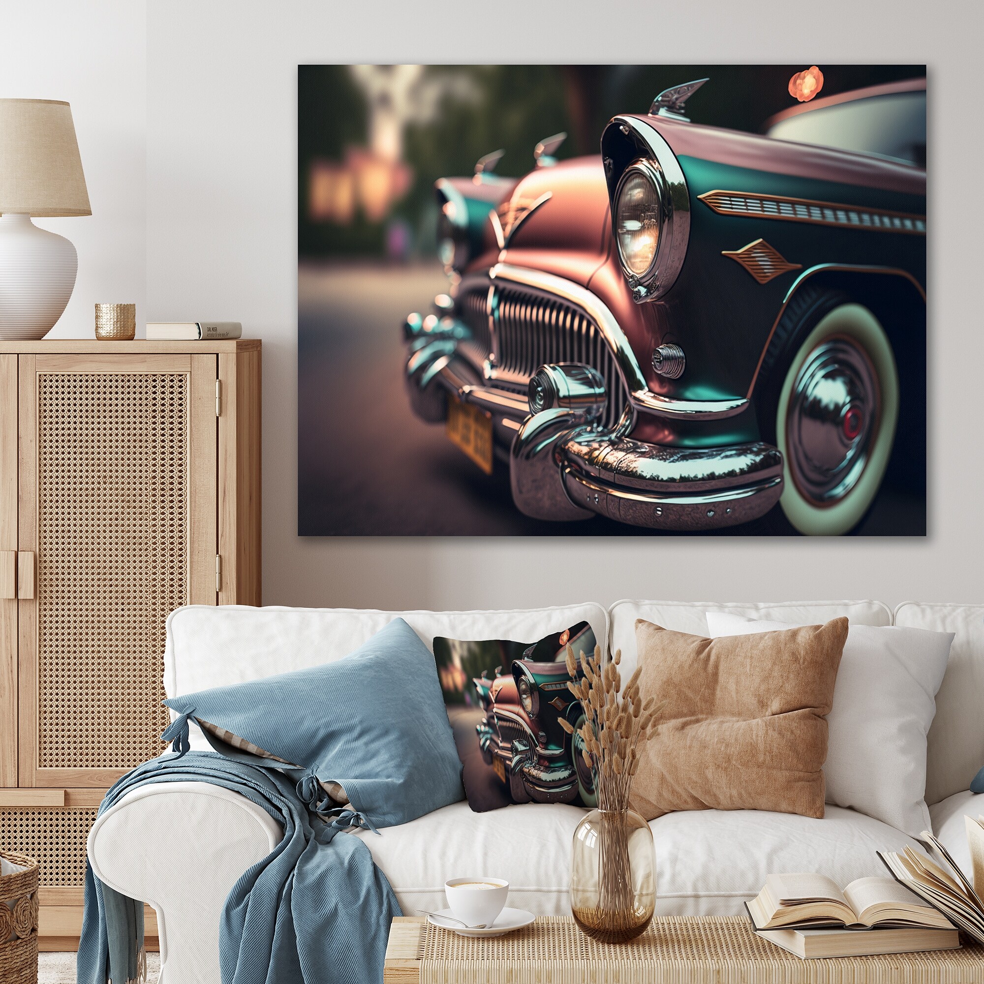 Designart "Close-up Of Classic Retro Car I" Retro Car Framed Canvas Wall Art Print