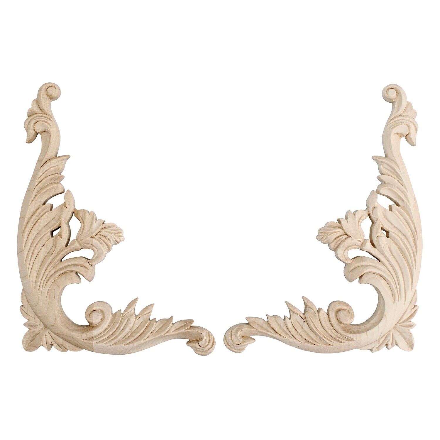 5 in. x 3-3/4 in. x 1/2 in. Unfinished Small Hand Carved North American Solid Hard Maple Onlay Acanthus Scroll