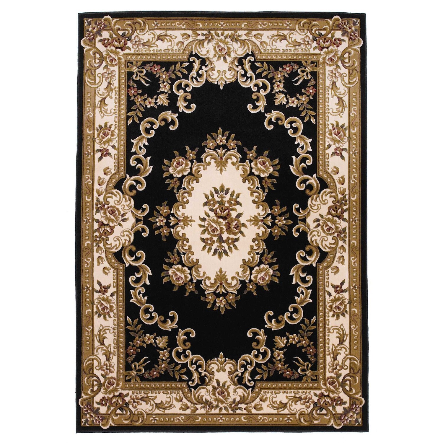 2'x3' Black Ivory Machine Woven Hand Carved Floral Medallion Indoor Accent Rug - 2' x 3' Oval
