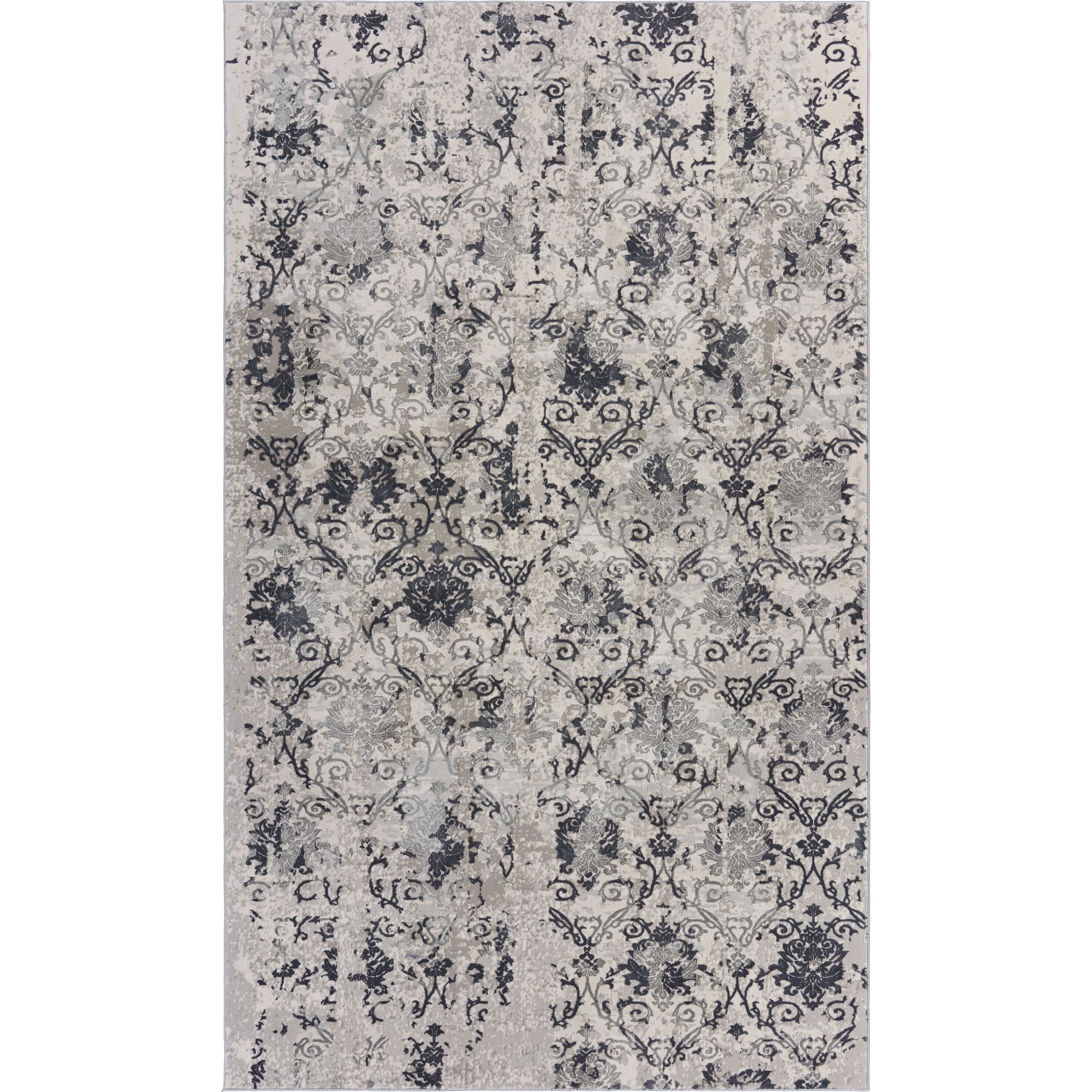LR Home Carved Transitional Damask Polyester Area Rug, Cream and Gray