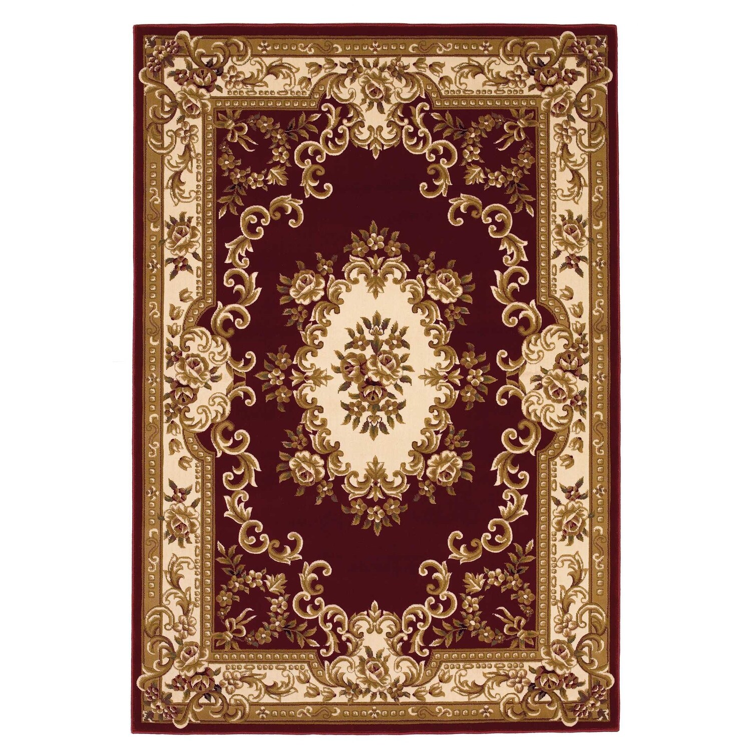 2'x3' Red Ivory Machine Woven Hand Carved Floral Medallion Indoor Accent Rug - 2' x 3' Oval