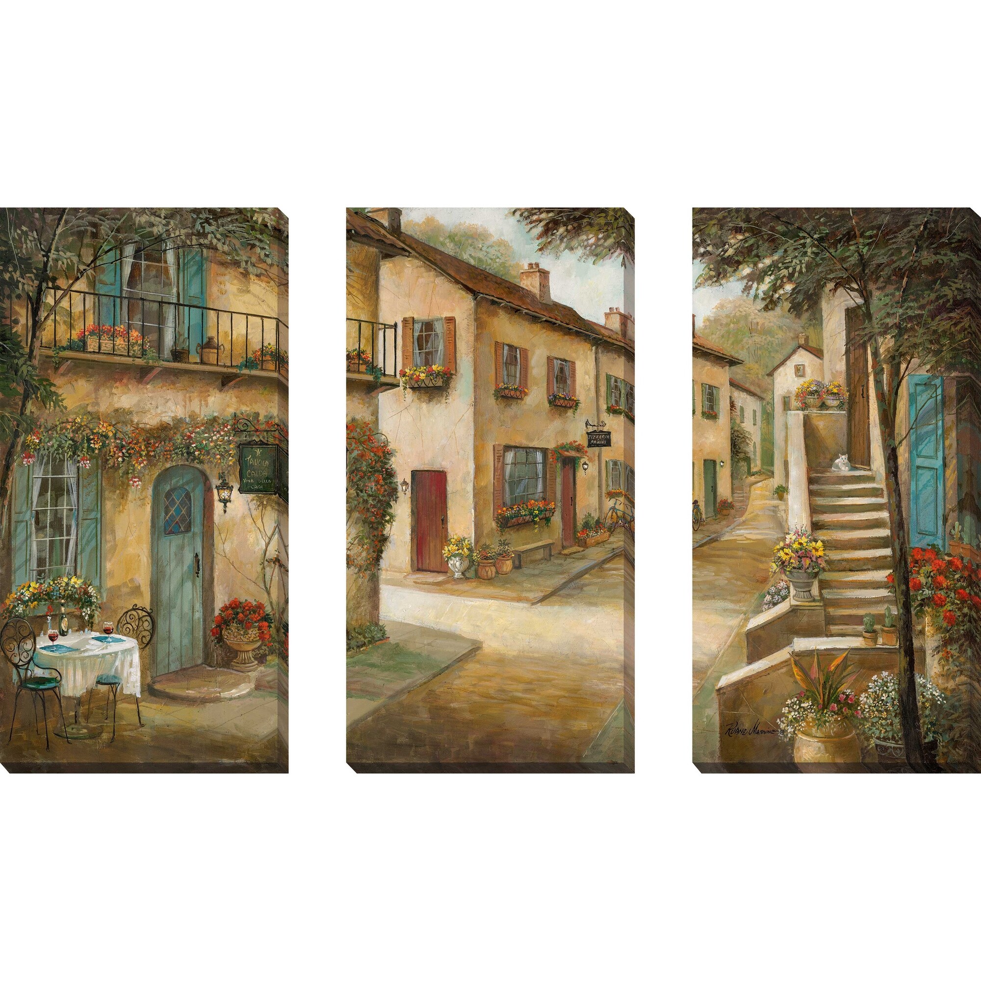 "Village Charm & Serenity" by Ruane Manning 3 Piece Set on Canvas