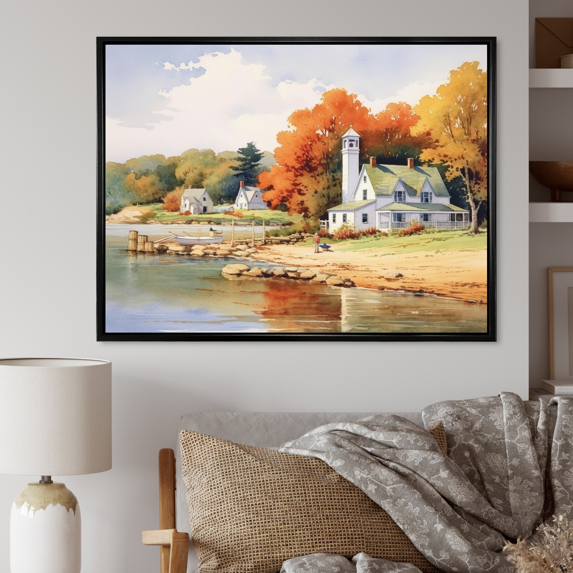 Designart "Connecticut'S Lake Village Charm II" Connecticut Framed Canvas Prints