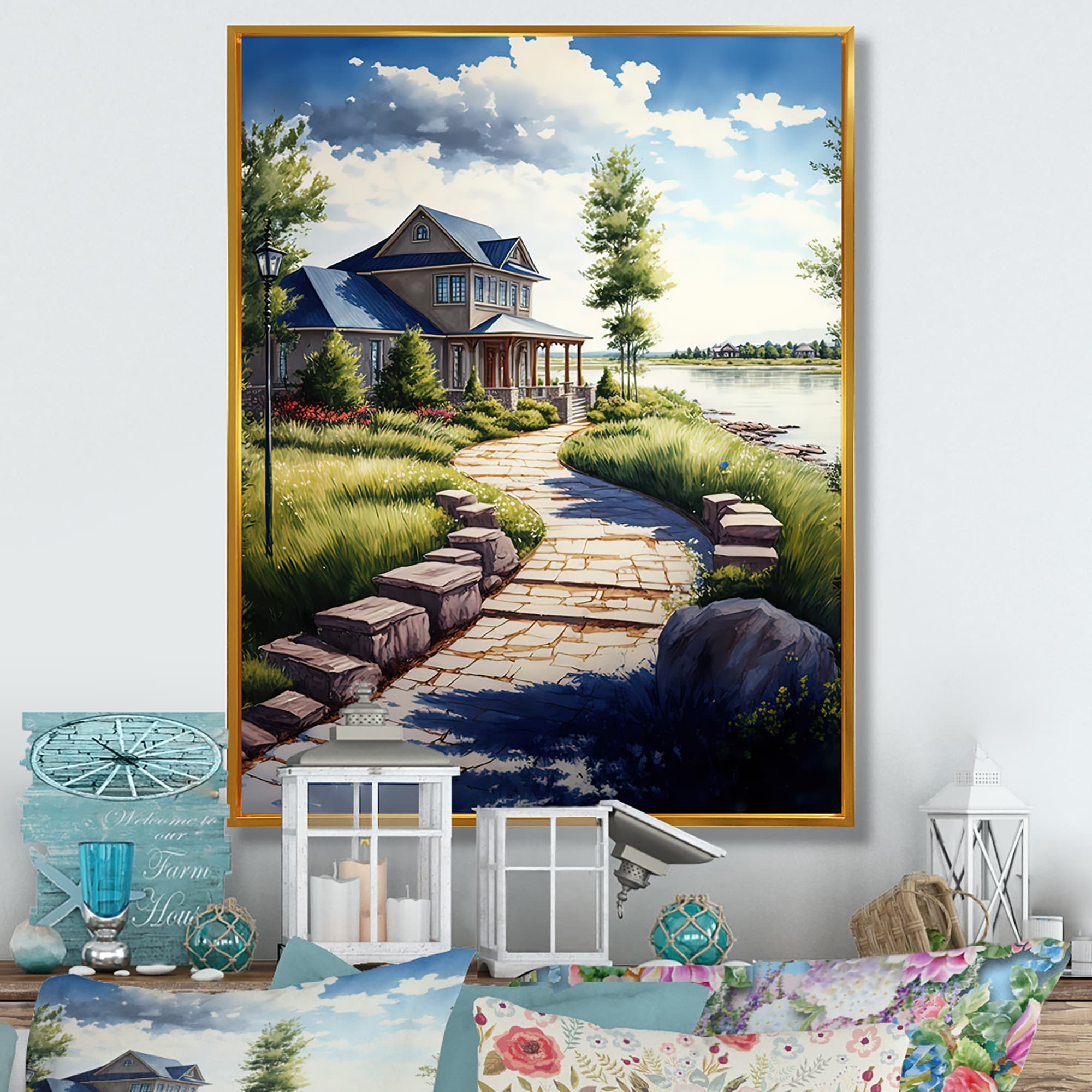 Designart "Charming Cottage on the Water I" Farmhouse / Country Framed Canvas Art Print