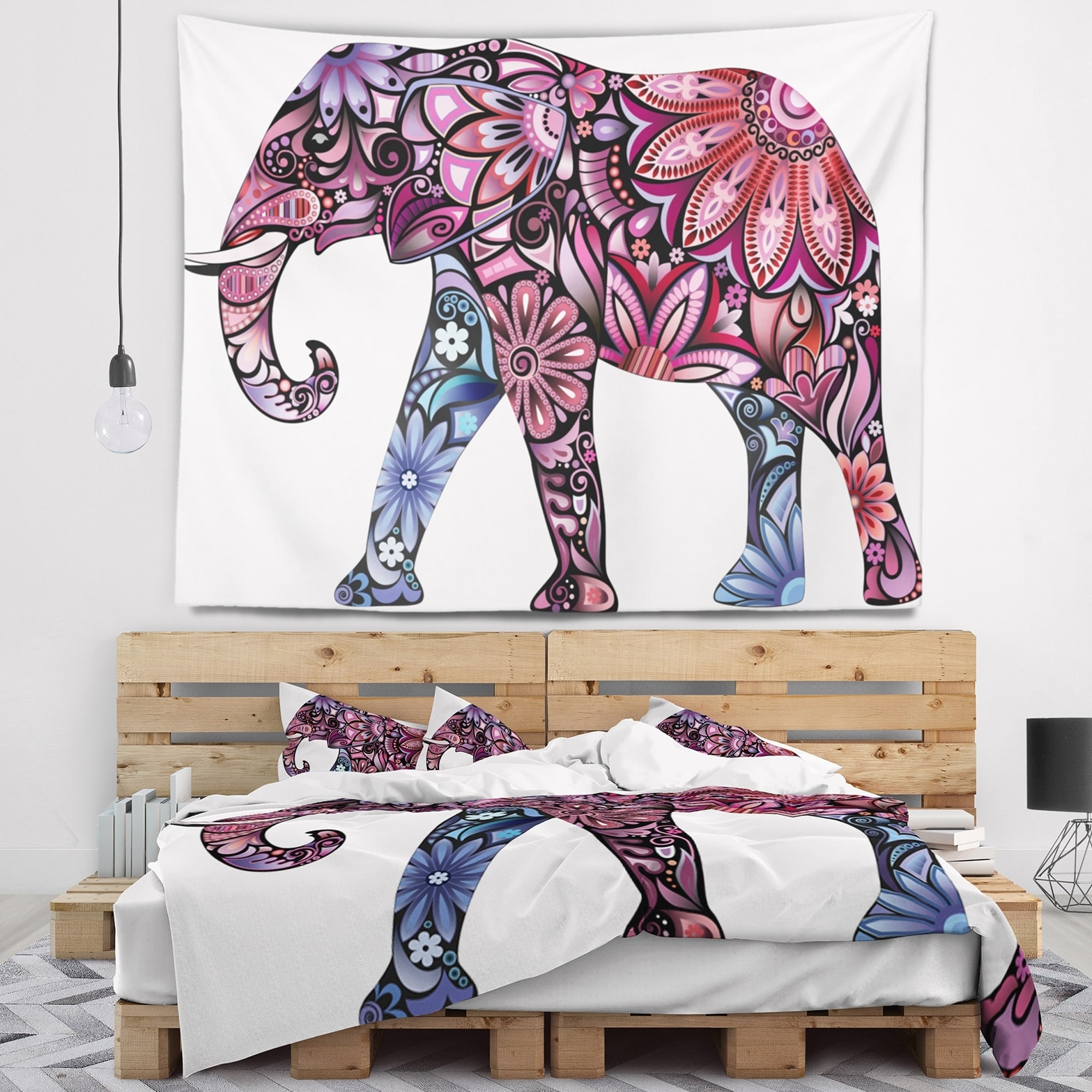 Designart 'Purple Cheerful Elephant' Animal Wall Tapestry