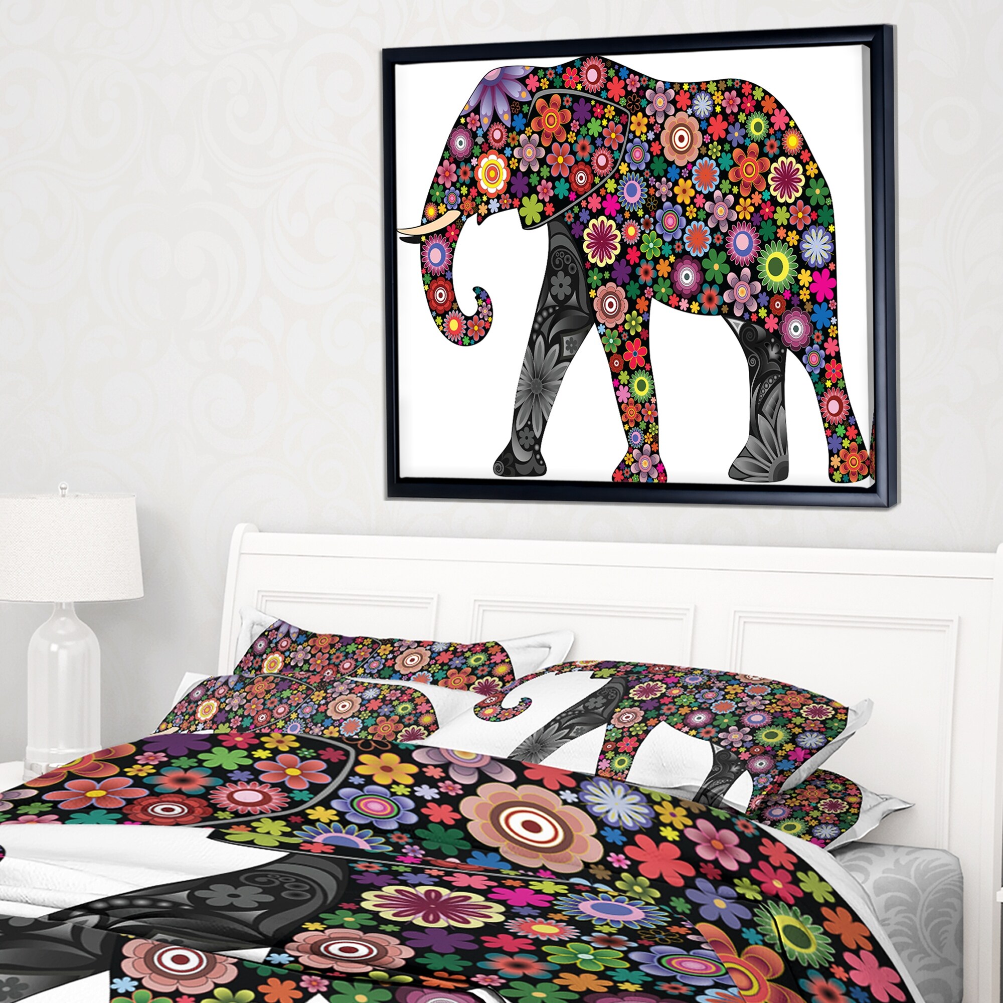 Designart "Cheerful Elephant" Animal Framed Canvas Art Print