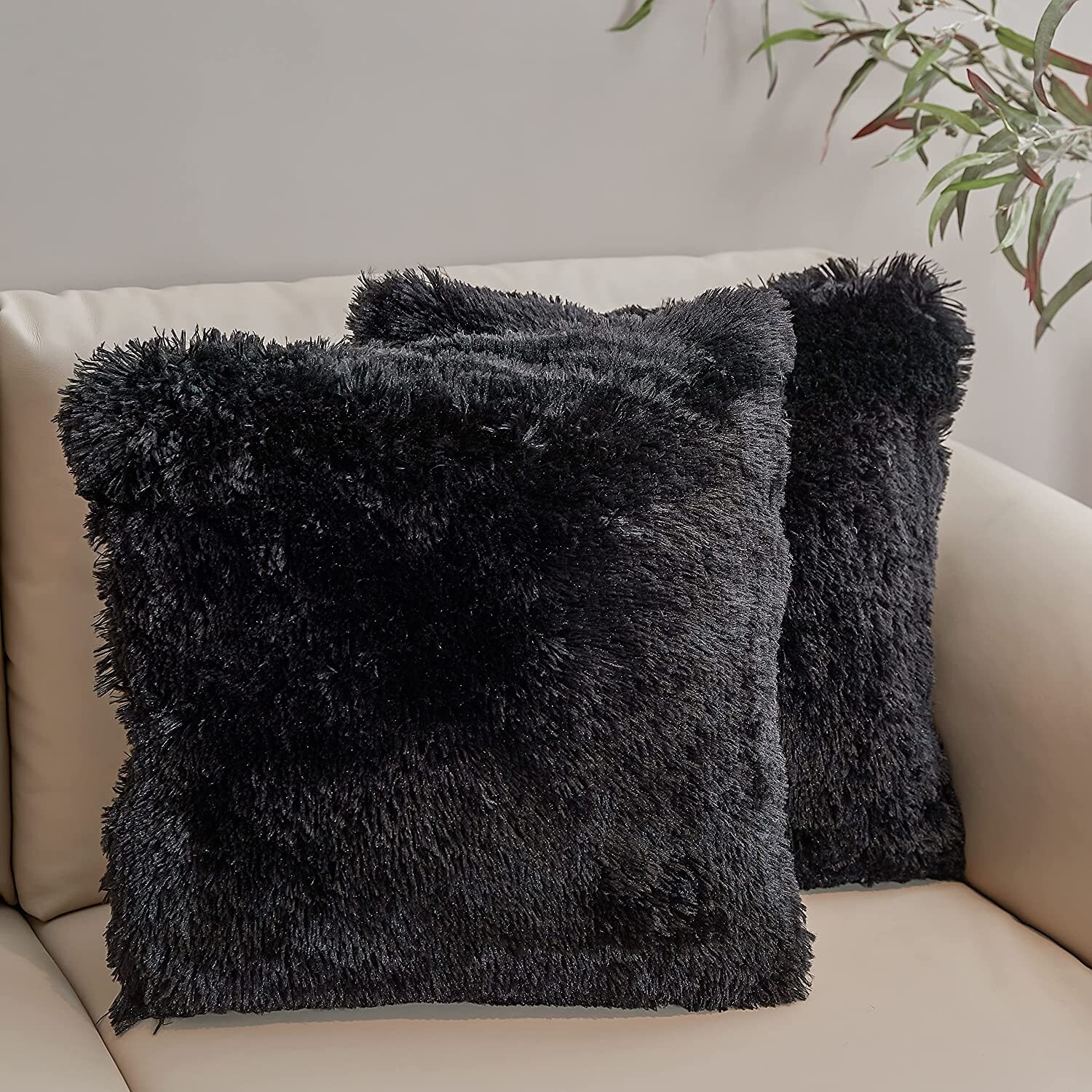 Cheer Collection Shaggy Long Hair Throw Pillows (Set of 2)