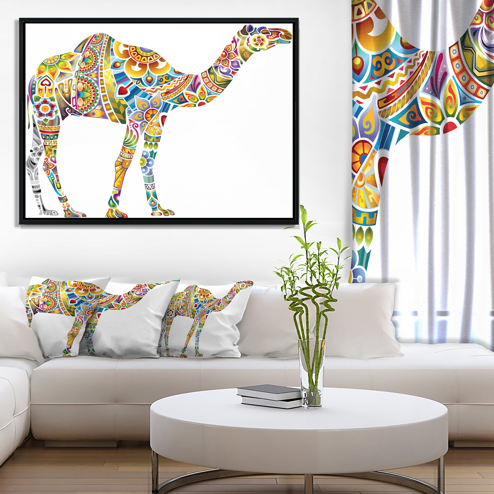 Designart "Cheerful Floral Camel" Abstract Print on Framed Canvas