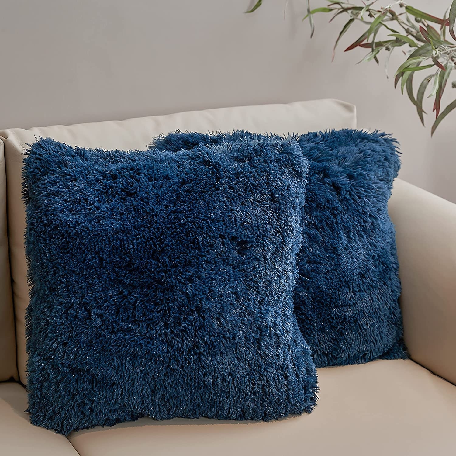 Cheer Collection Solid Color Faux Fur Throw Pillows (Set of 2)