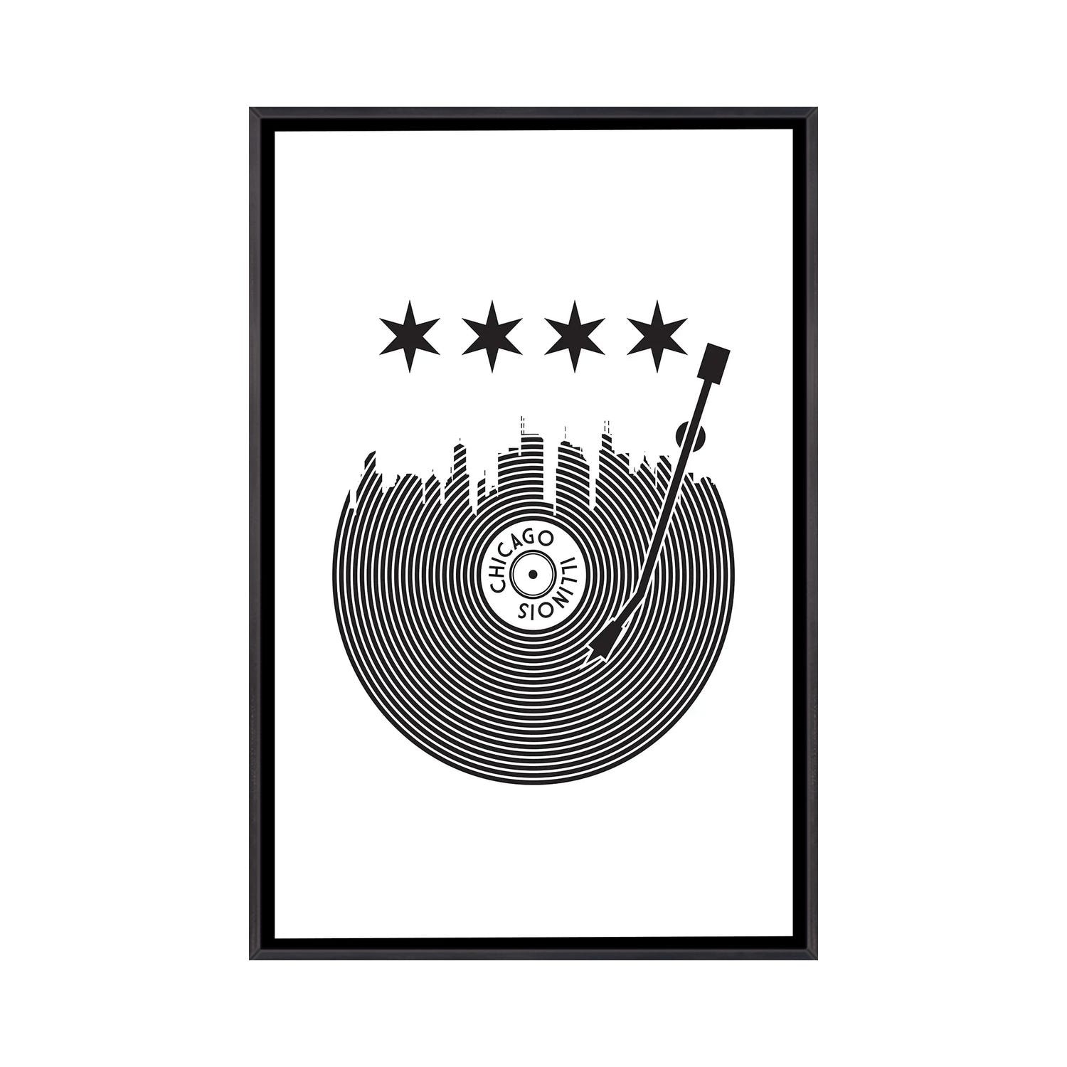 iCanvas "Chicago Record Skyline" by Benton Park Prints Framed
