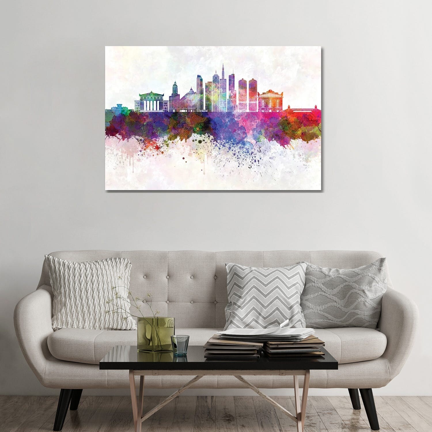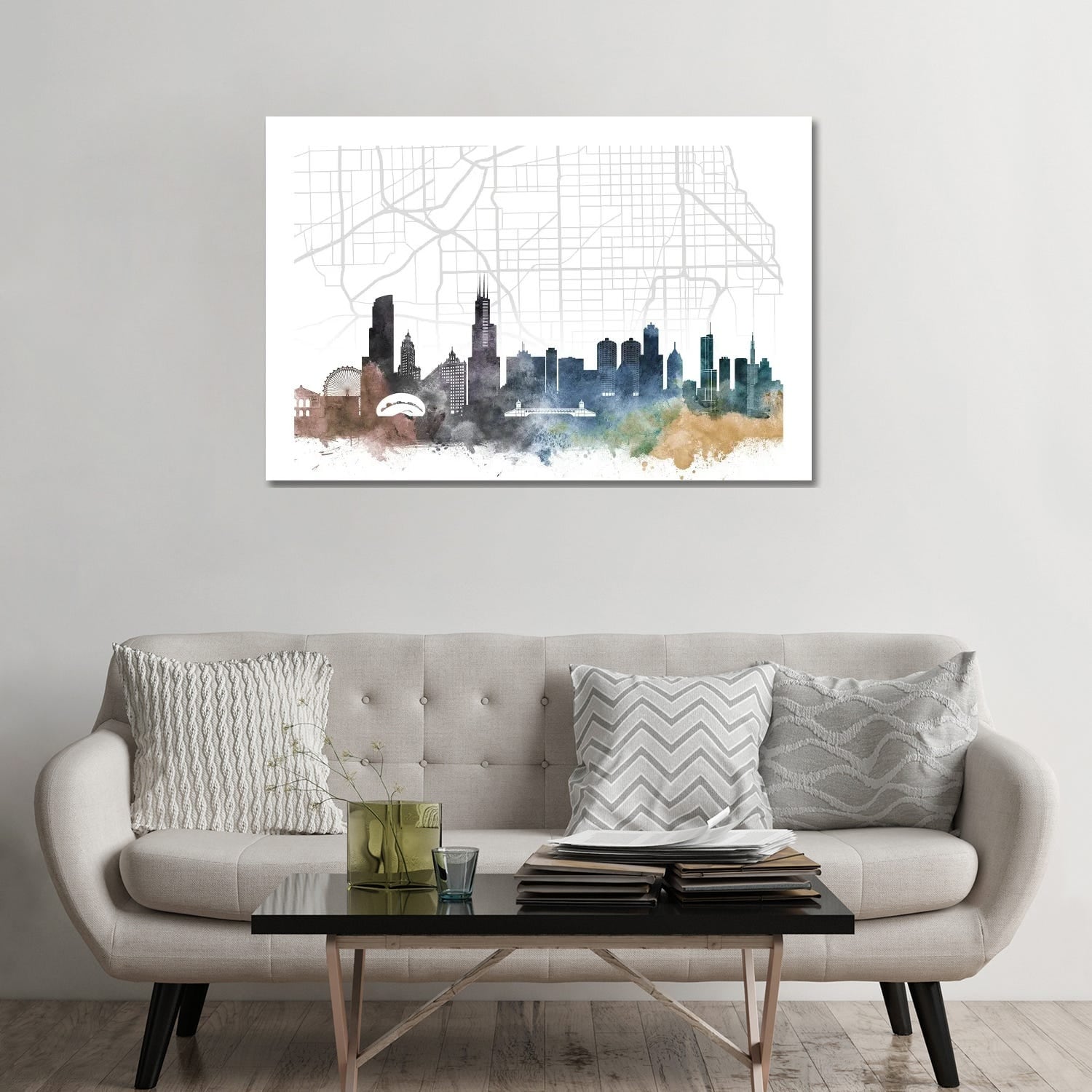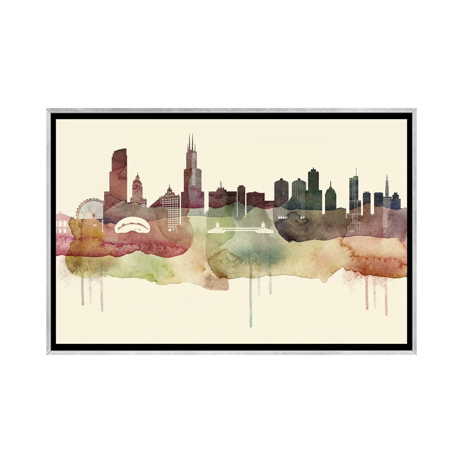 iCanvas "Chicago II Skyline in Watercolor Background" by Paul Rommer Canvas Print