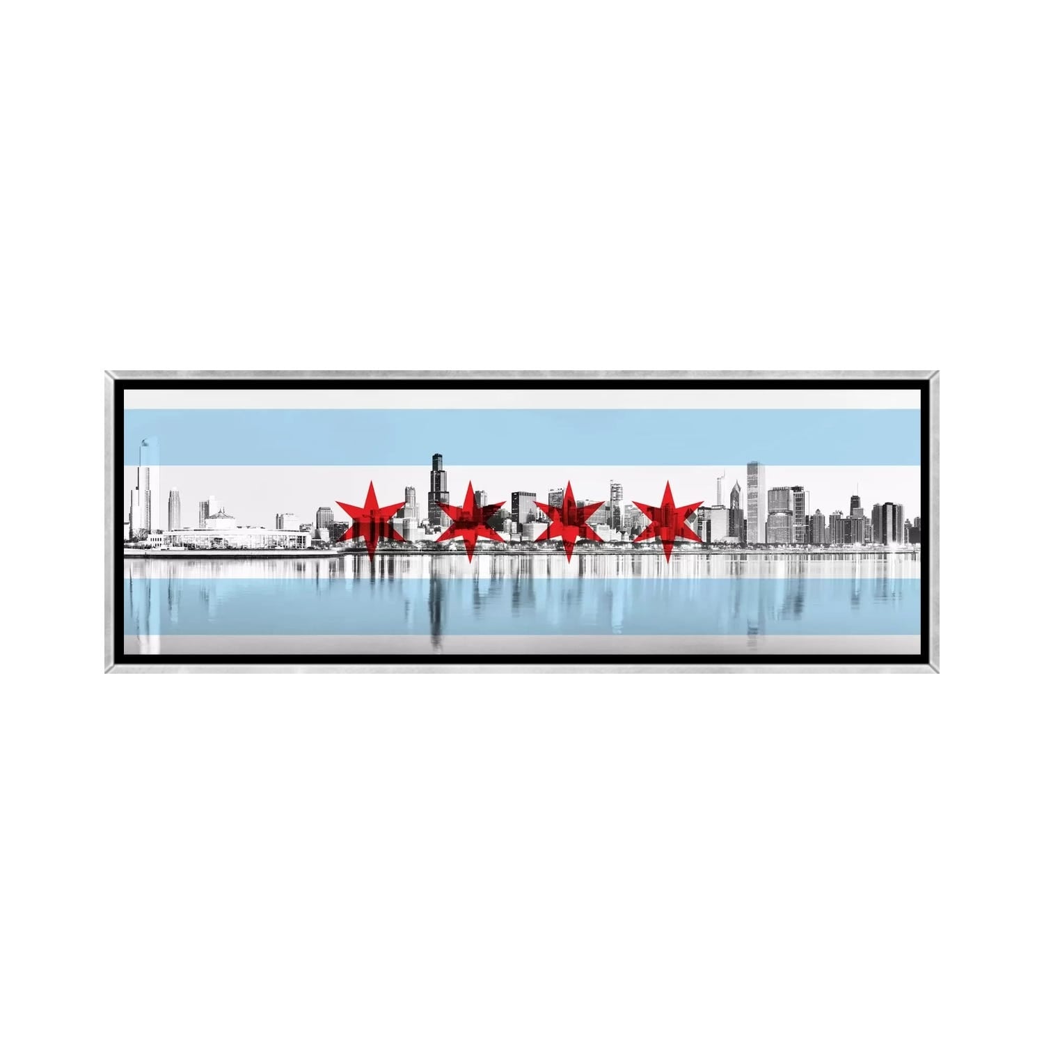 iCanvas "Chicago City Flag (Downtown Skyline) Panoramic" by iCanvas Framed Canvas Print