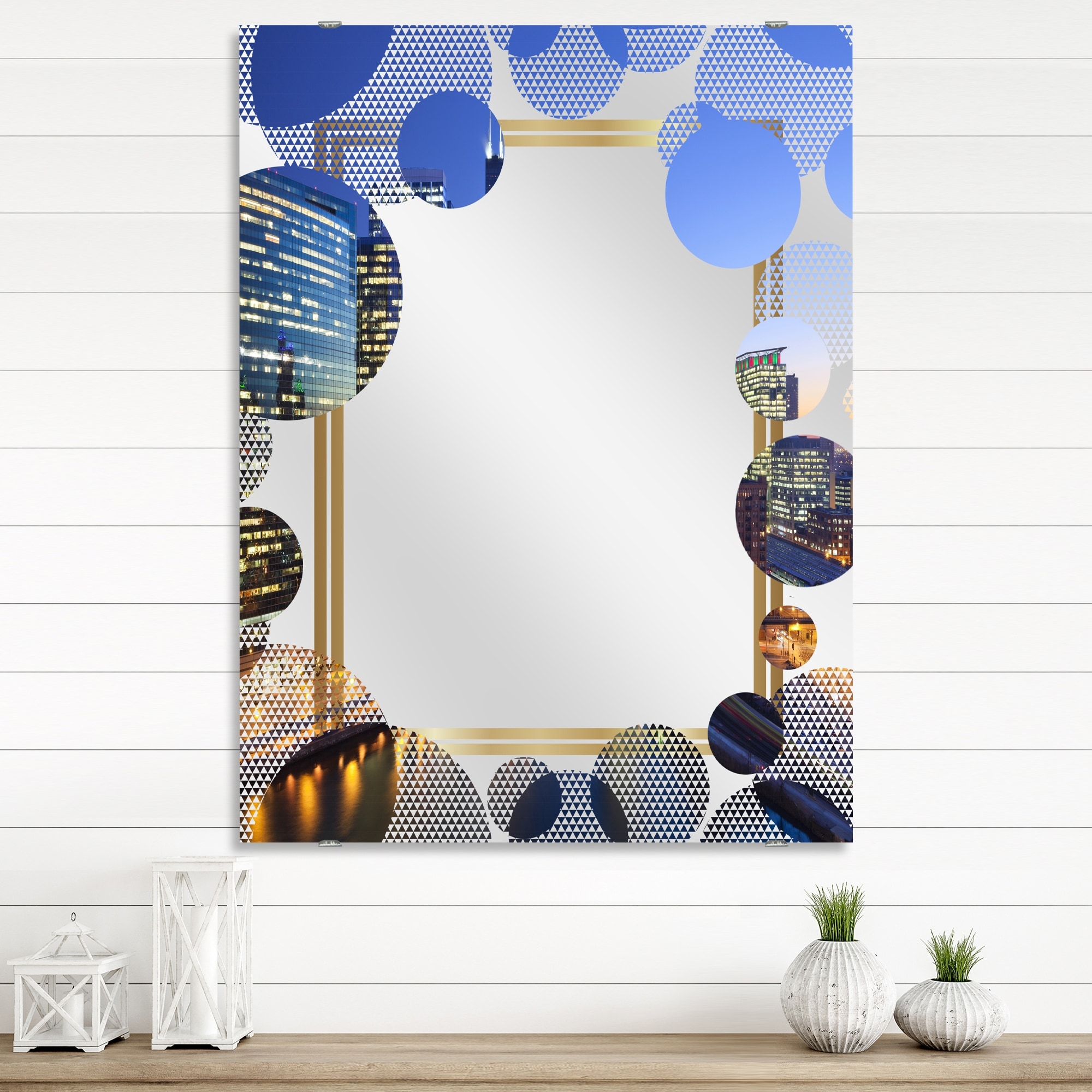 Designart 'Chicago River with Bridges at Sunset' Cityscape Printed Wall Mirror